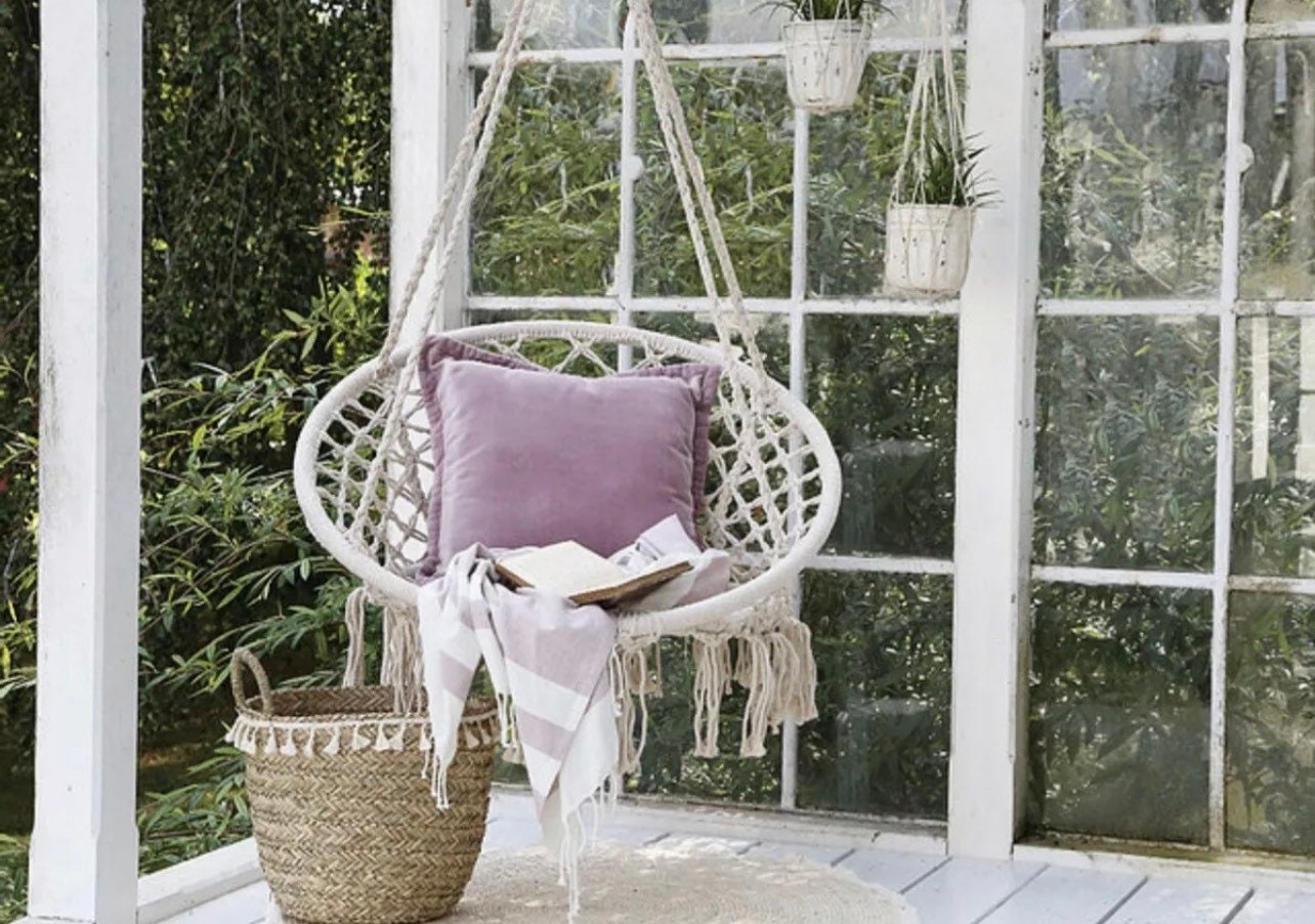 Bring style and comfort to your home with this beautiful cotton cream Boho swinging Chair. Suitable ...