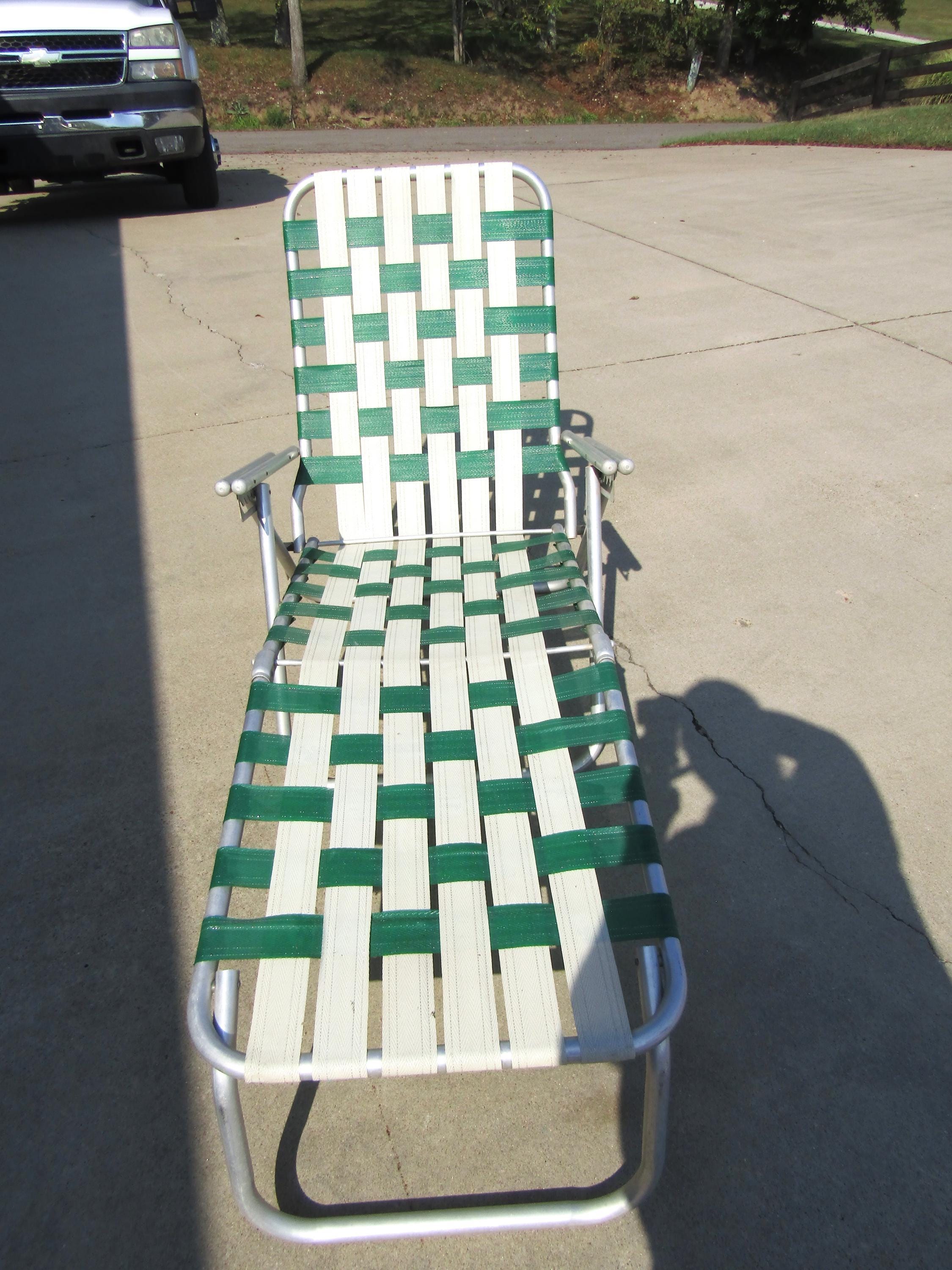 Vintage Aluminum Folding Lawn Chair: Green & White Webbing