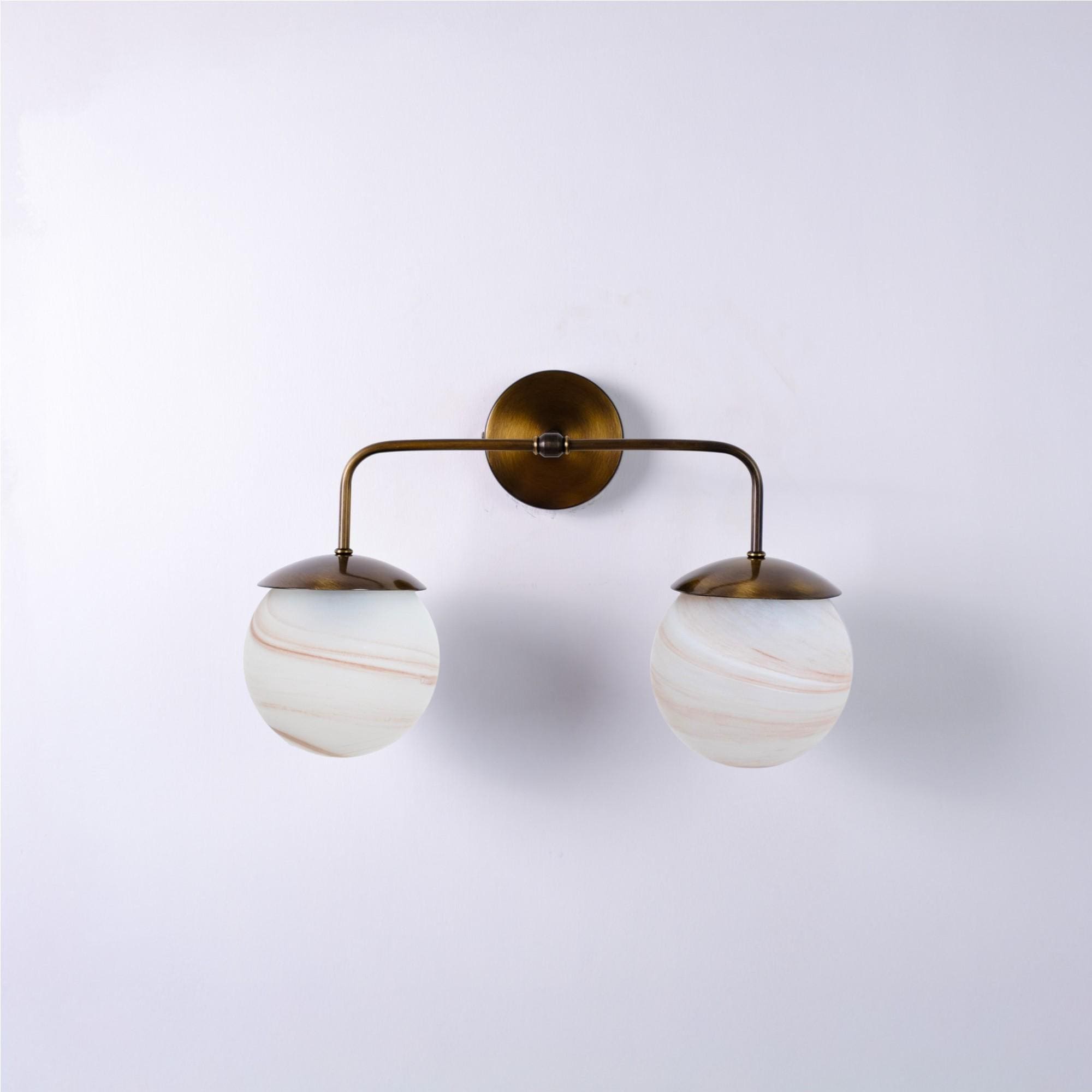 Brass Wall Sconce - Blown Glass Bathroom Vanity Light, Art Deco Bed...