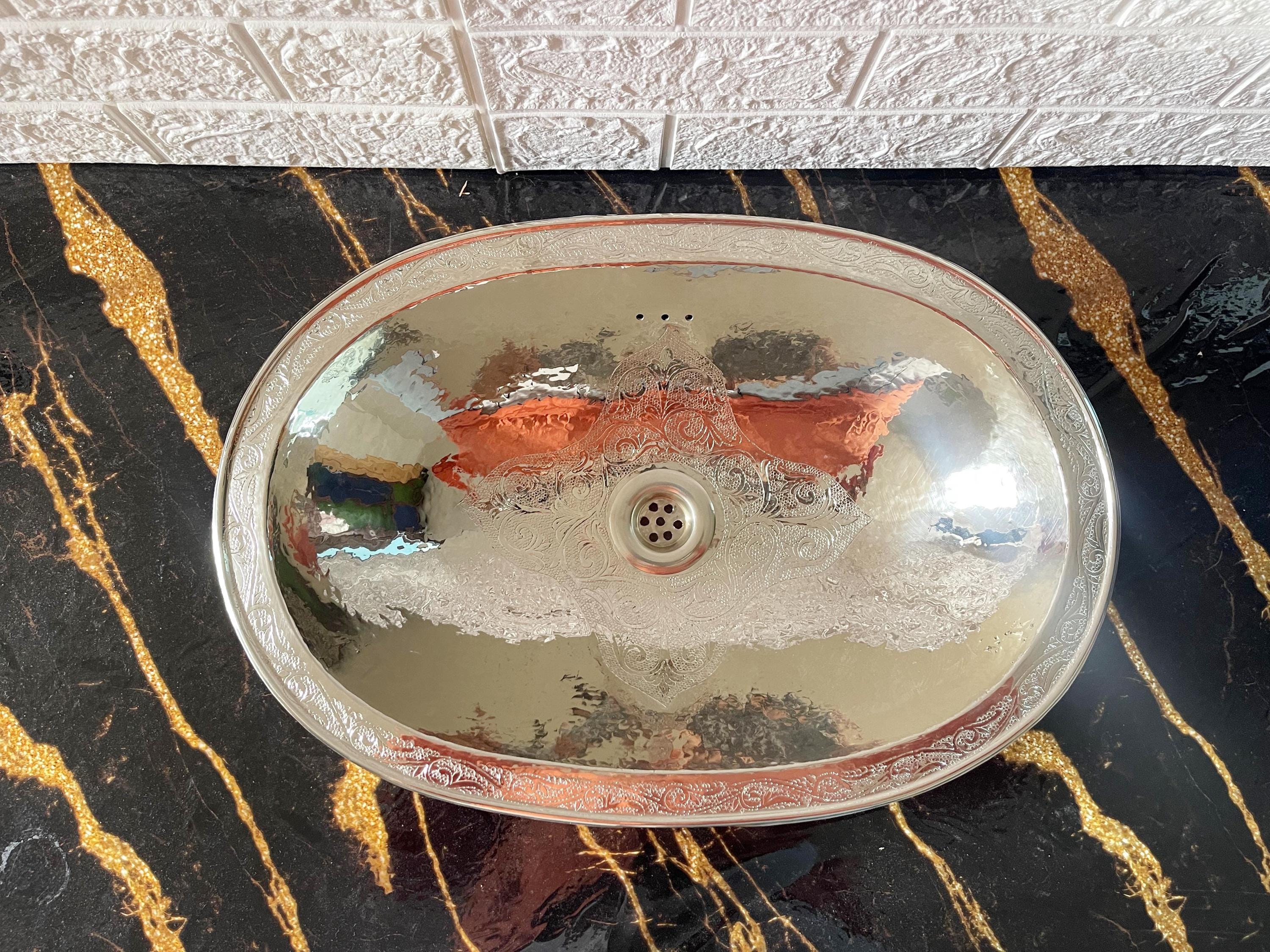 "Handmade Bathroom Silver Sink - Moroccan Nickel Vessel Sink with Hammered Texture Unique Craft...