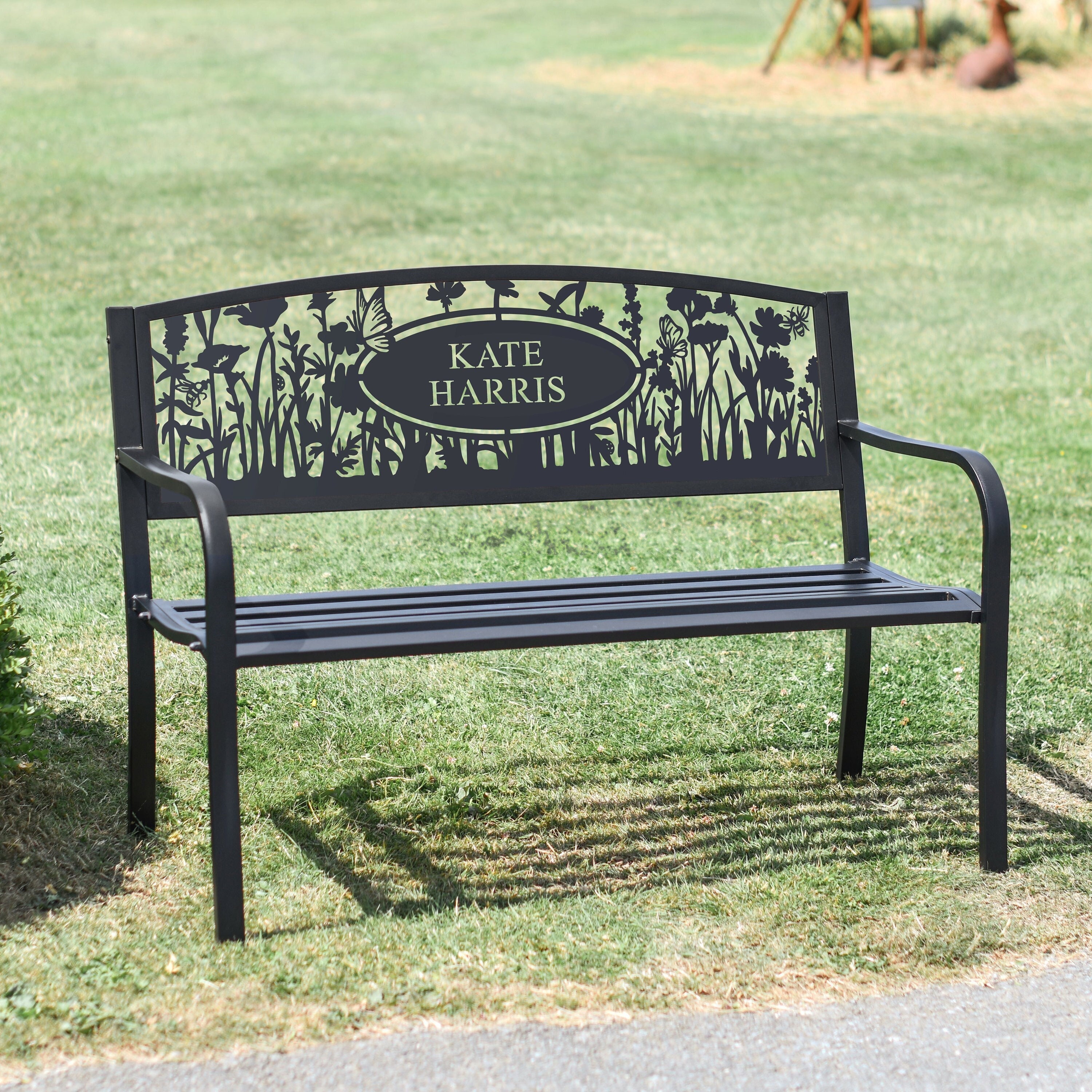PERSONALISED Meadow Design Steel Bench/Flowers Bench Outdoor, Groun...