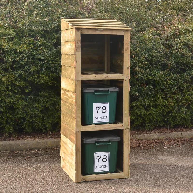 Wooden Triple Recycling Bin Store, Garden Storage Shed, Personalize...