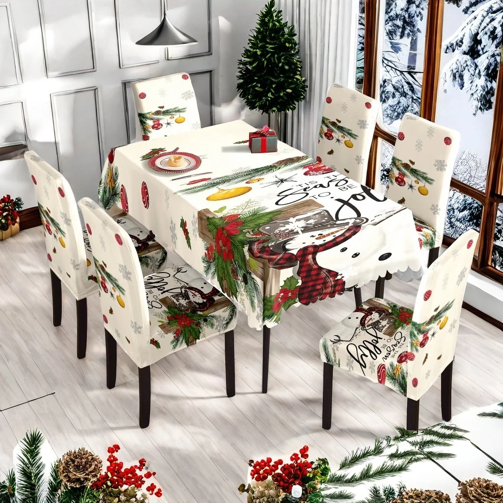 Christmas Elastic Print Parsons Chair Covers Table Set for Holiday ...