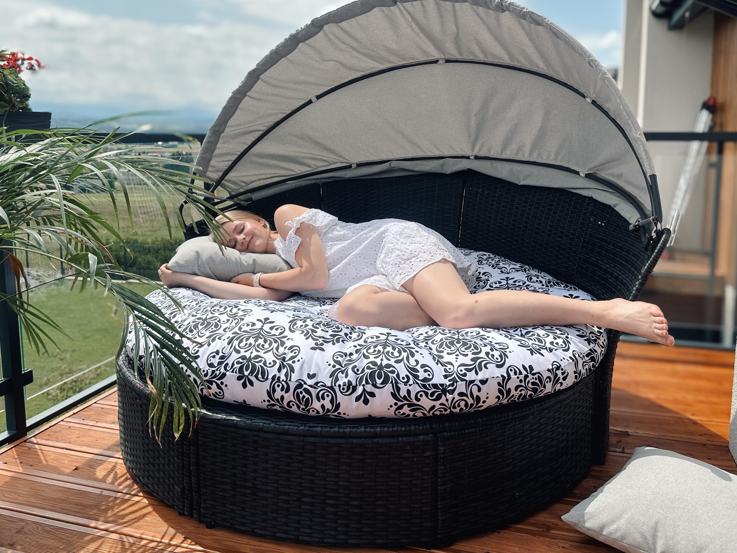 outdoor daybed cushion + removable cover with zipper | round sun is...