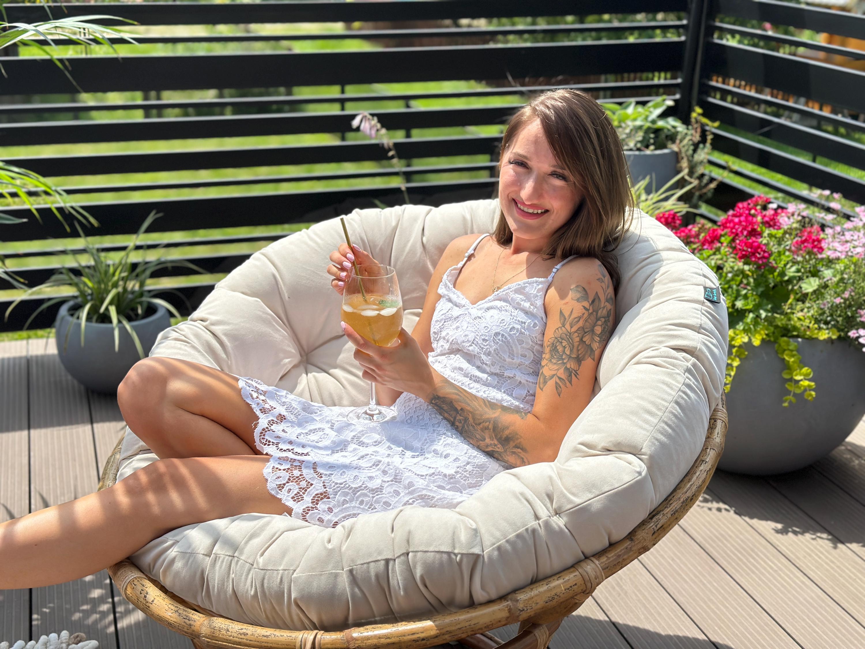 HUGE water resistant papasan cushion Our round waterproof outdoor cushion is the perfect addition to...