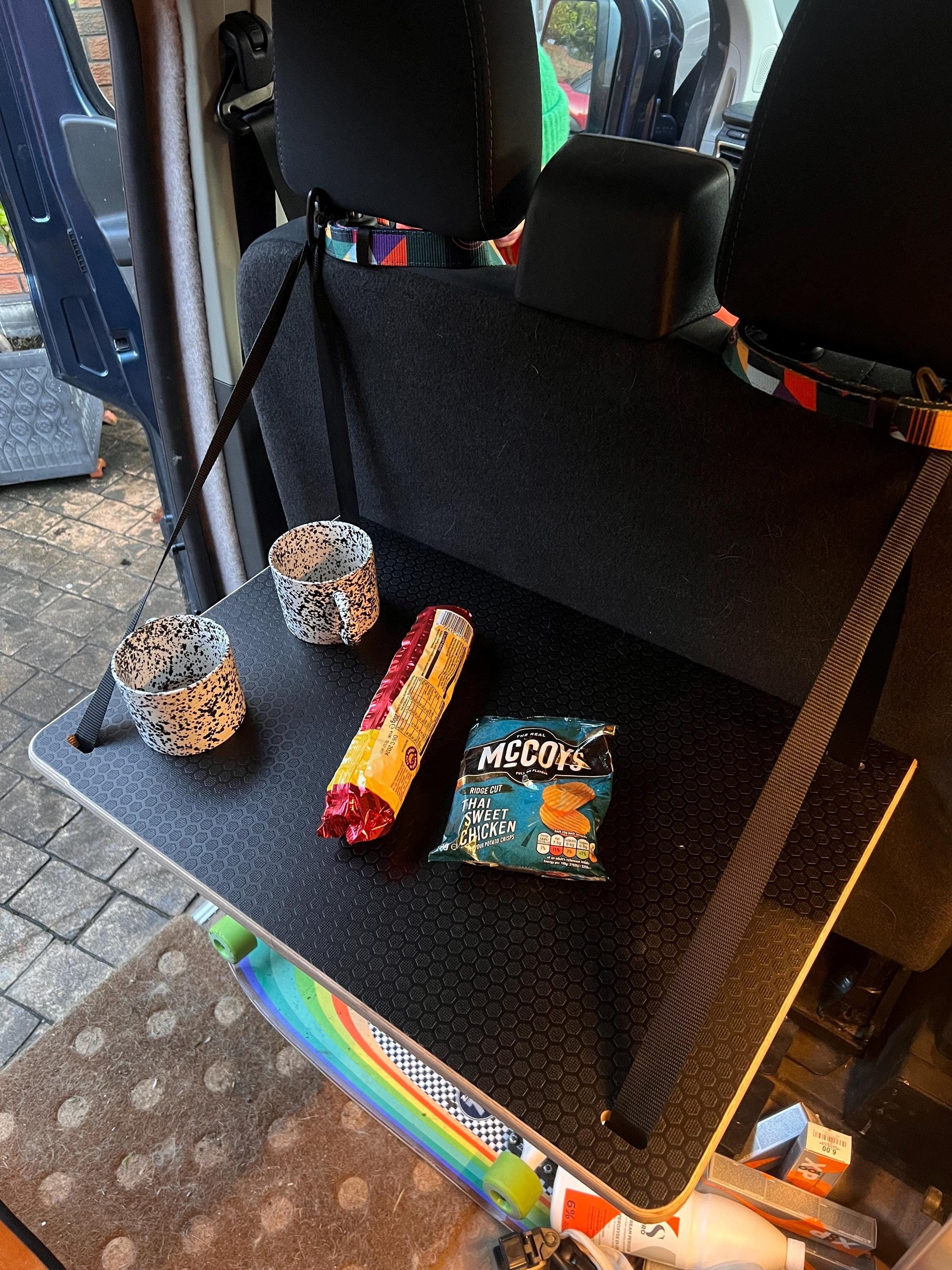 Hand made adjustable hanging inside table for campervan or van to go on the back of a double seat. U...