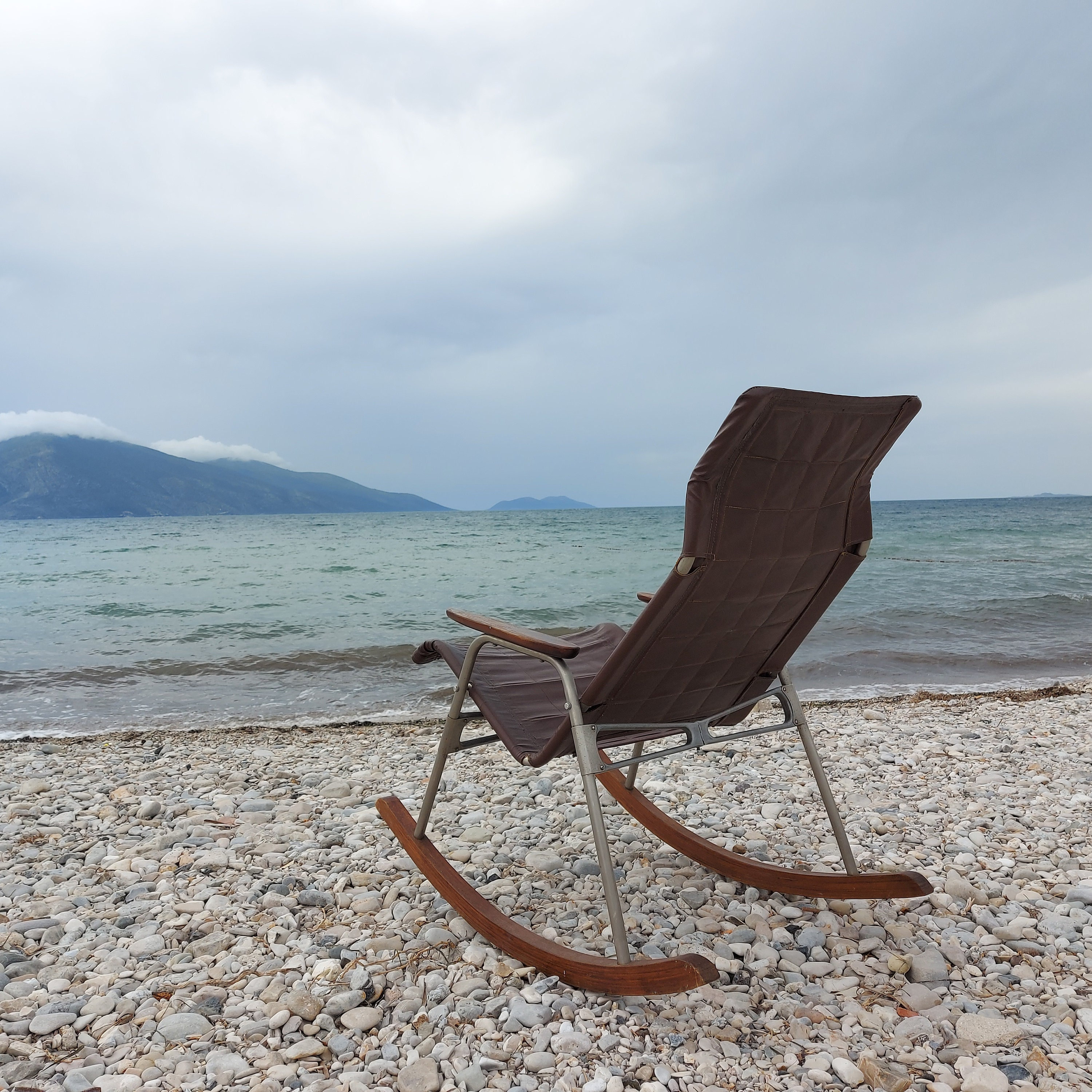 Foldable Takeshi Nii chair, 1950s,rocker, rocking chair, leather, g...