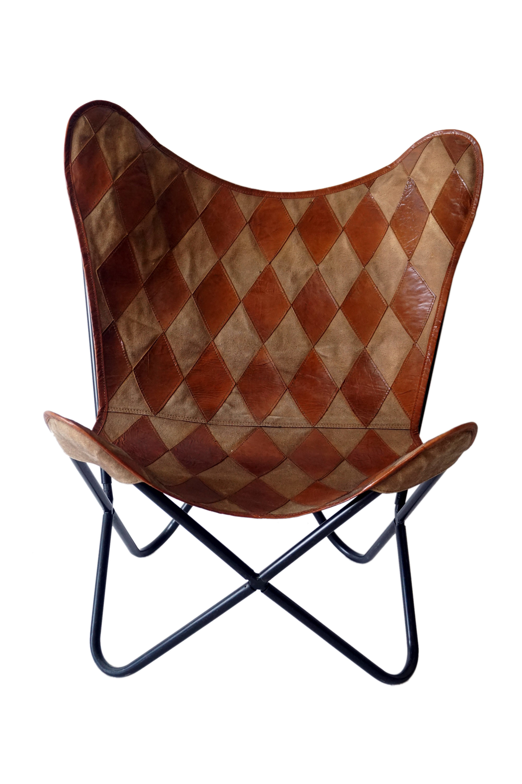 Patio Butterfly Chair - Canvas Leather Mixture Seat With Iron Stand