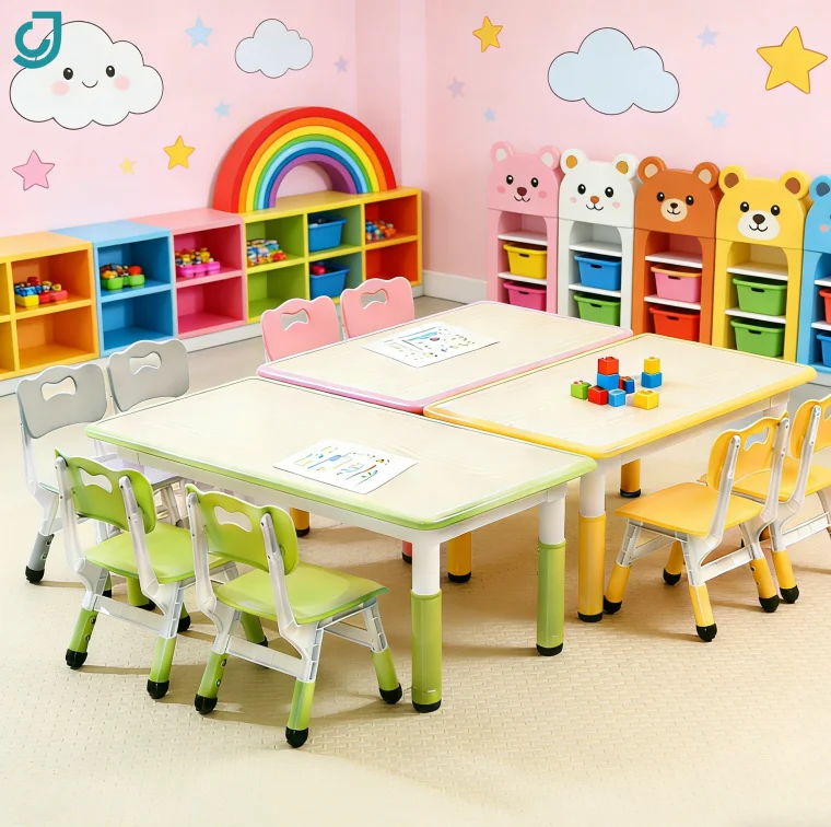 Kids Table and Chairs Set Kids Daycare Furniture Study Desk and Sto...
