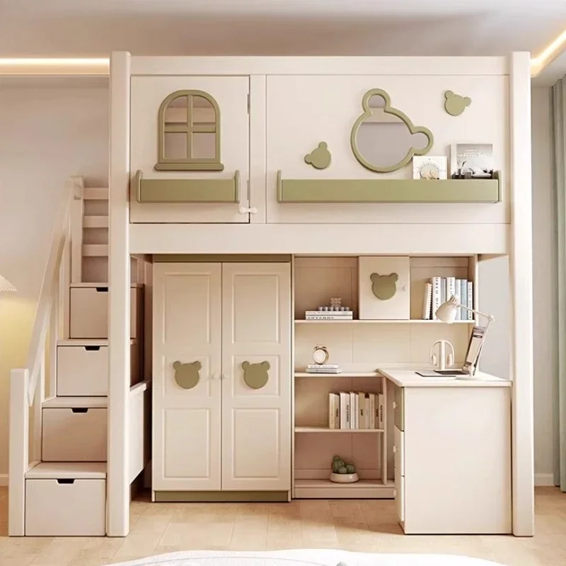 All solid wood wood wax oil children on and off the bed bunk bed girl princess high and low bed