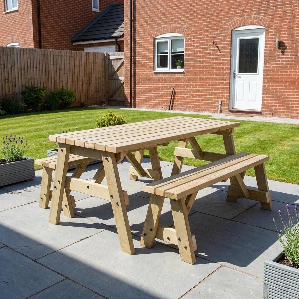 Solid Wood Garden Picnic Bench Set - Victoria Compact - Custom 3ft-...