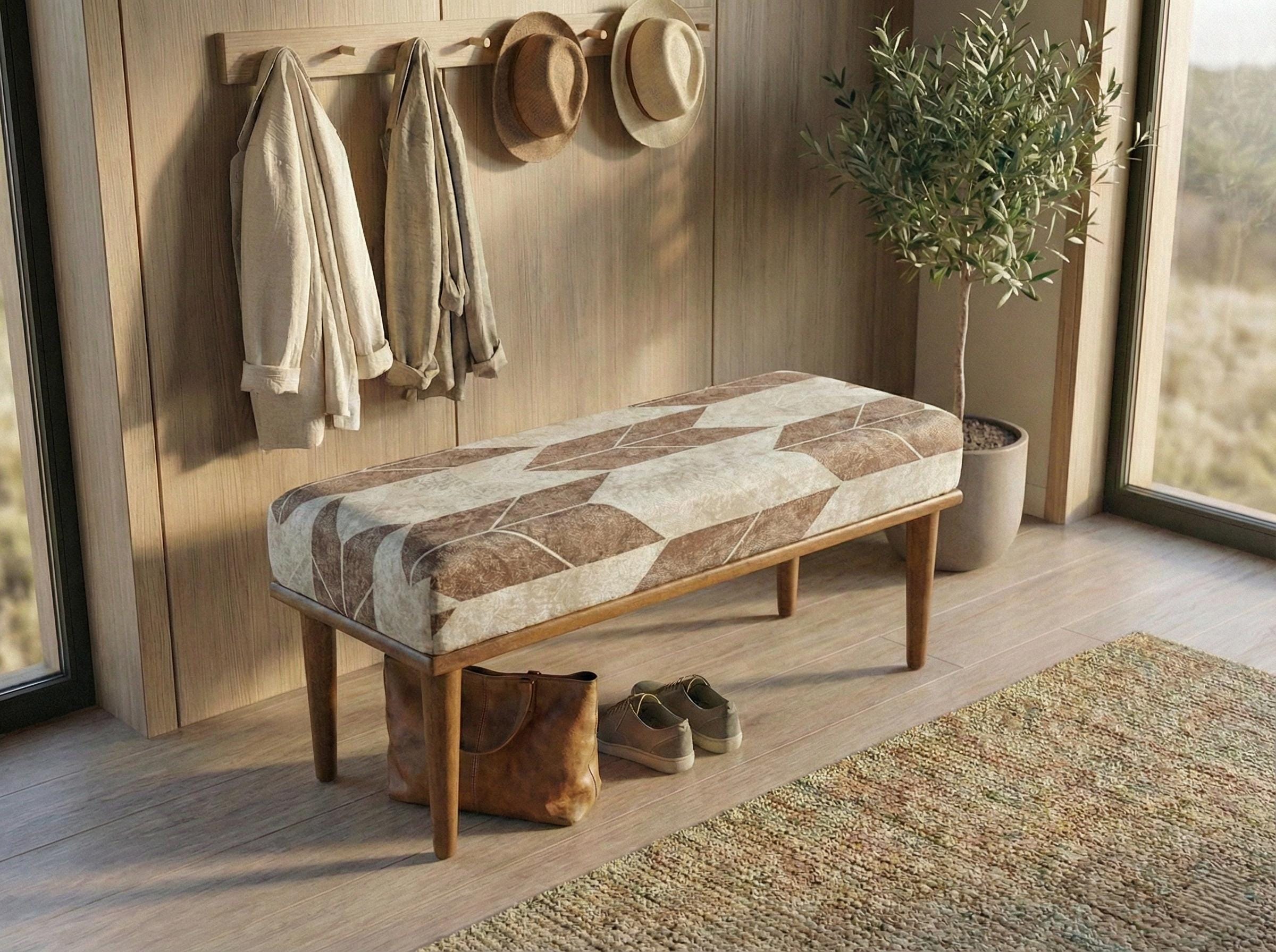 Modern bedroom pouf, Soft color bench, Sofa companion, Ottoman french table, Cozy piano chair, Boho ...