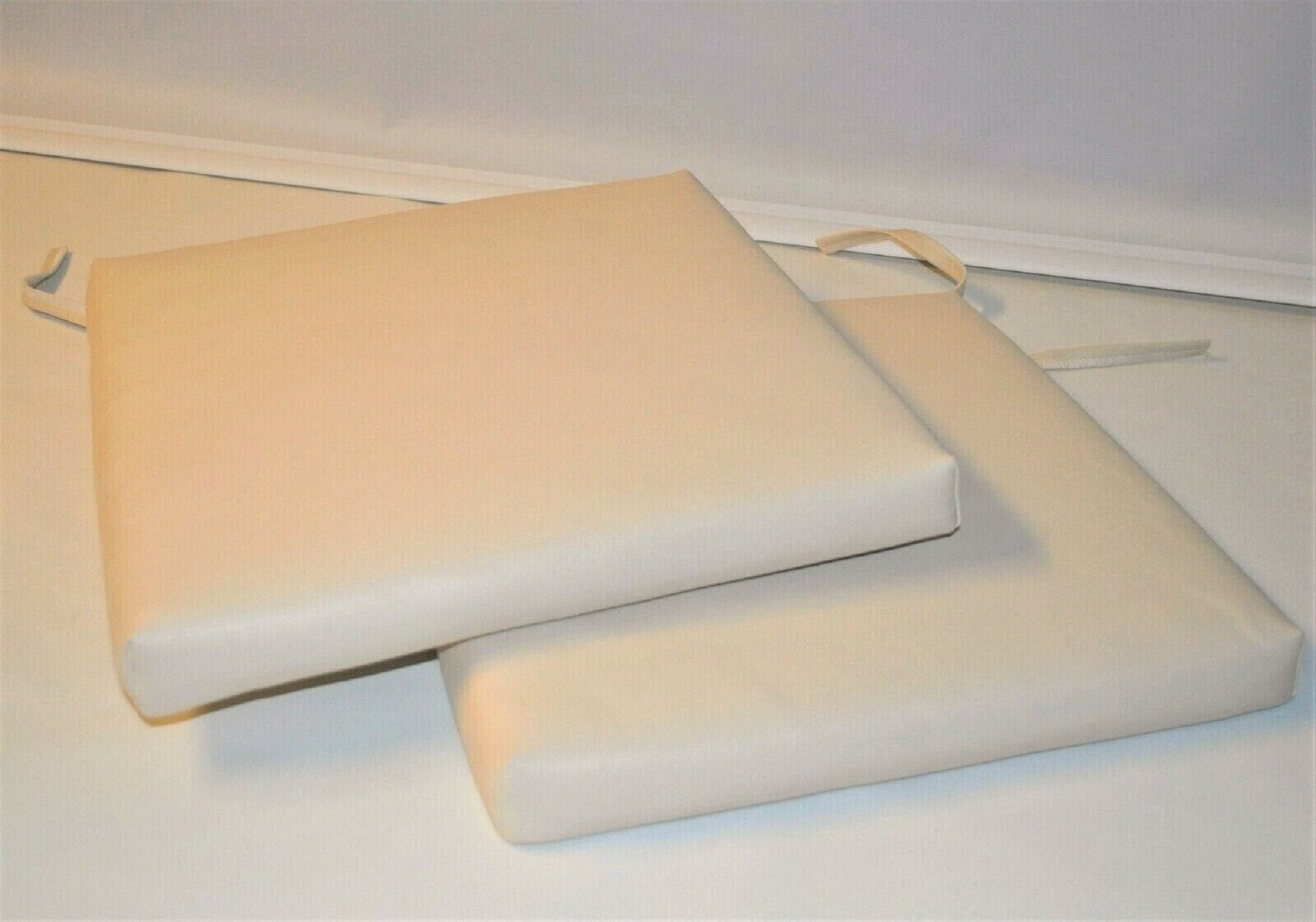 "2 Cream Faux Leather Square Dining Garden Chair Cushions Seat...