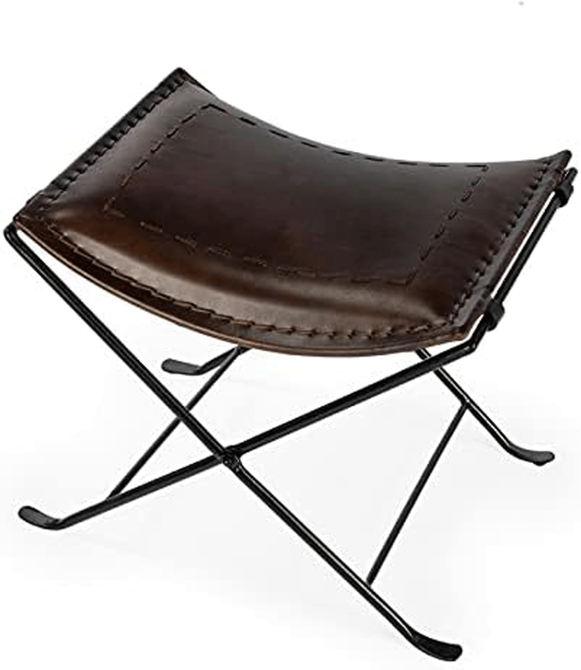Handmade Dark Brown Leather Butterfly Stool: Folding Camping Chair