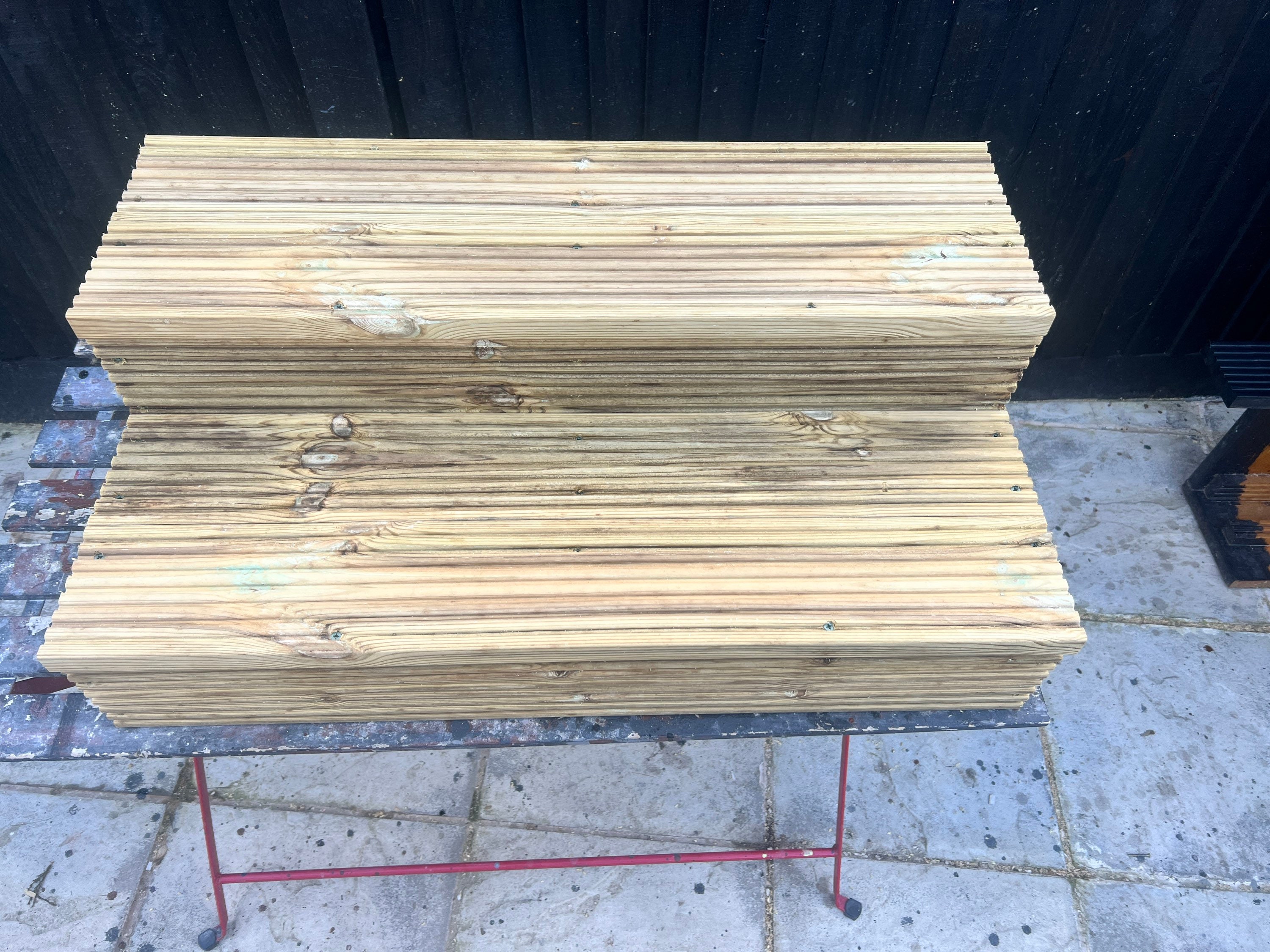 "Decking steps for hot tub / garden / house 2 tier strong and sturdy decking steps Each step ha...