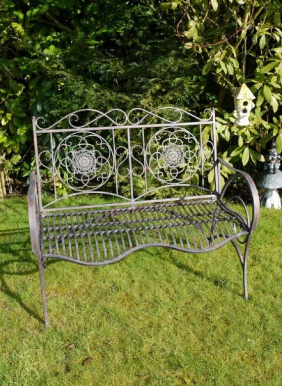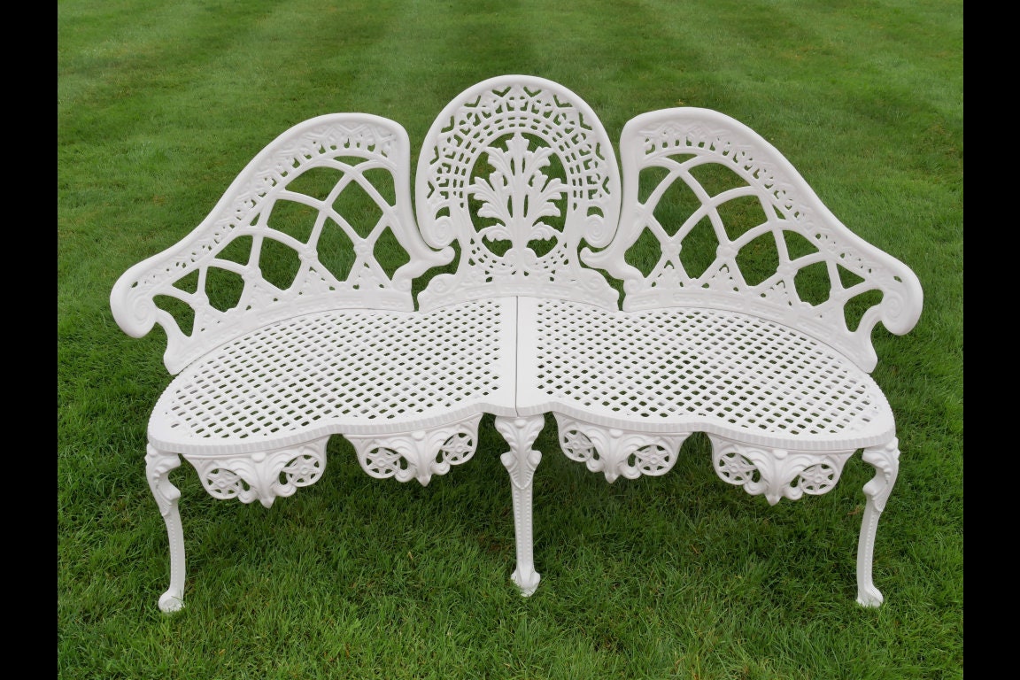 White antique style garden bench metal white furniture park nostalgic Garden This bench would be a w...