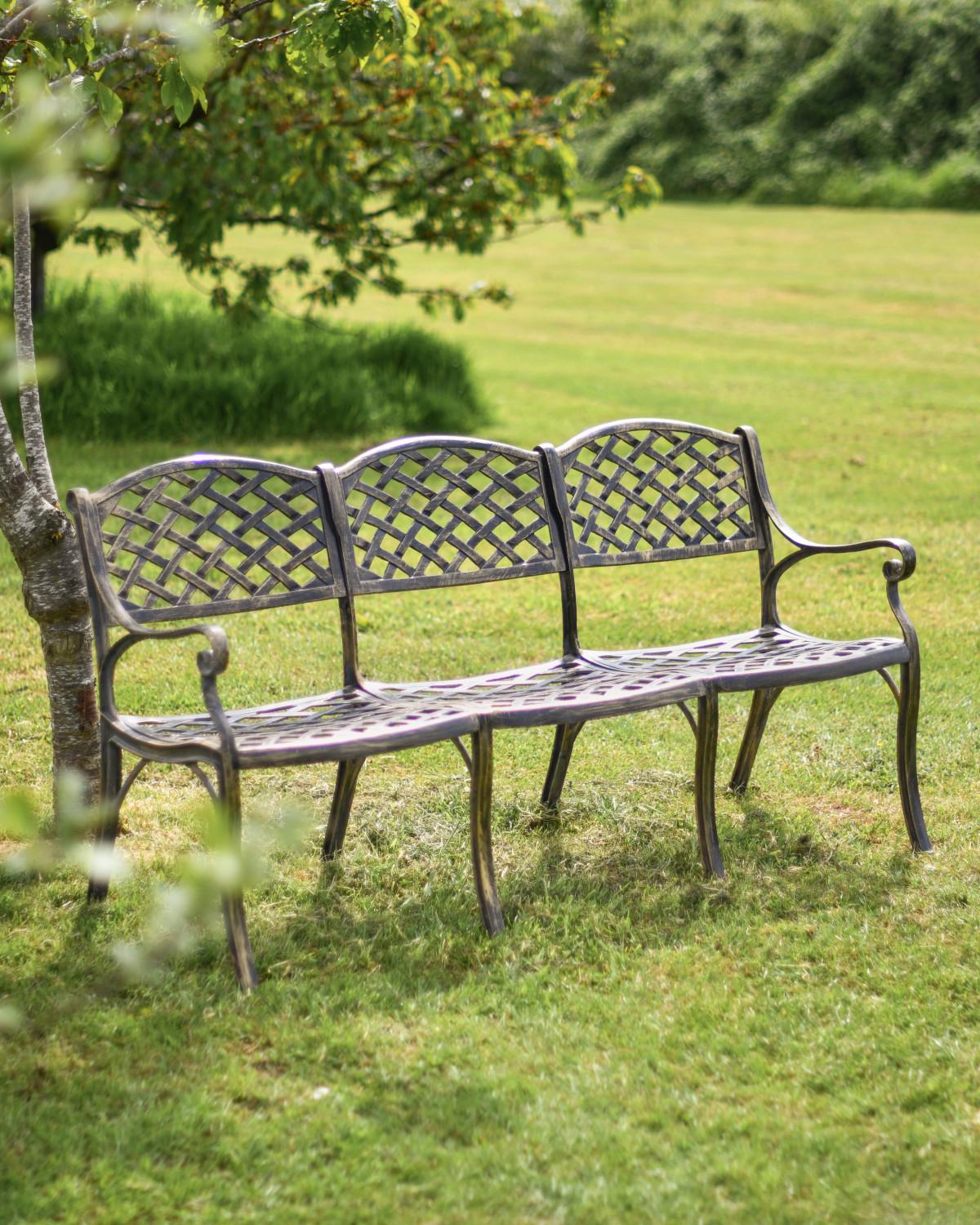 Hand Painted Brushed Gold Three Seater Garden Bench, Decorative Gar...