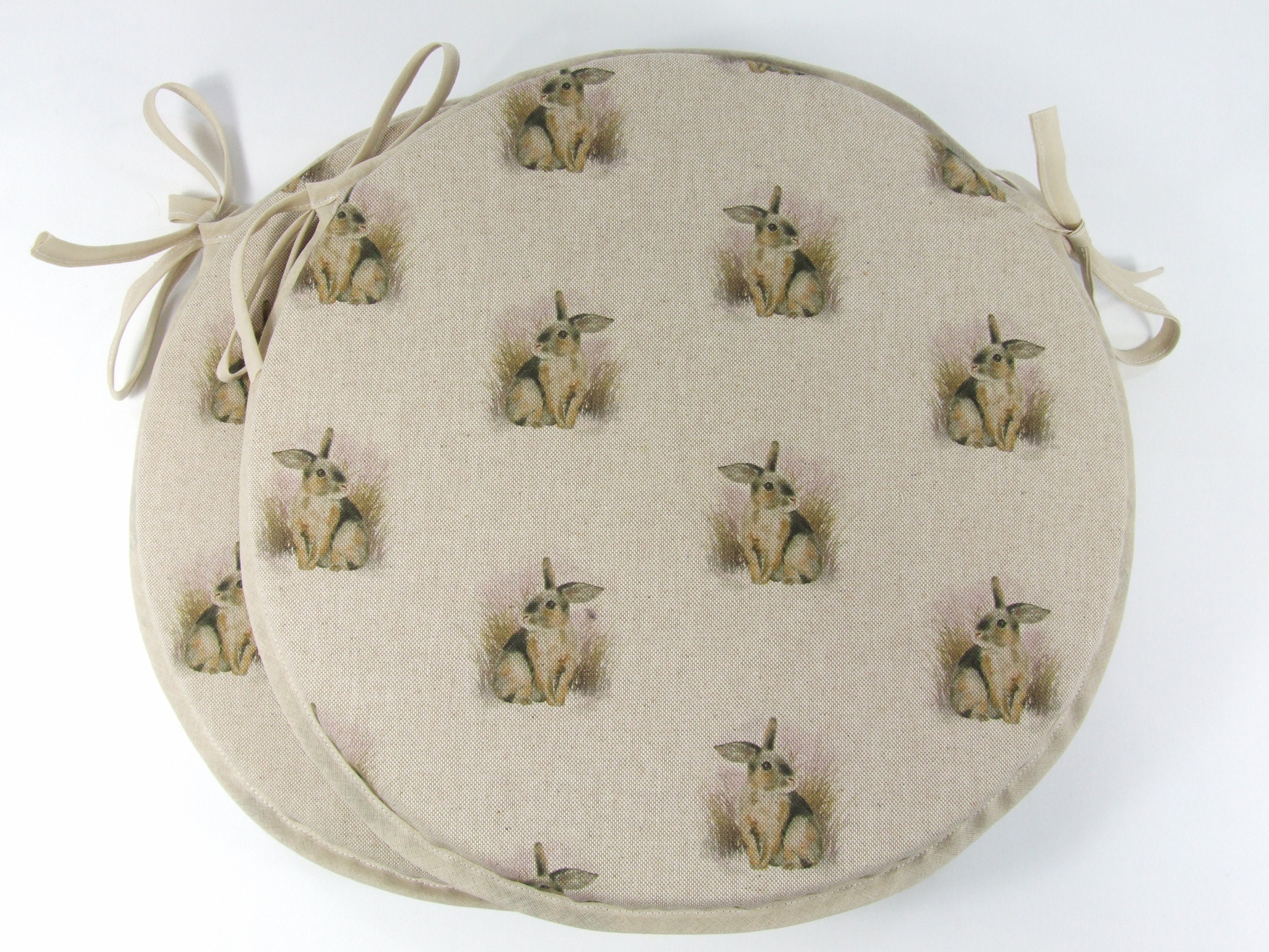 "Set Of 2 Country Rabbit Bistro/Round Tie-On seat pads for garden/patio/kitchen/dining. These a...