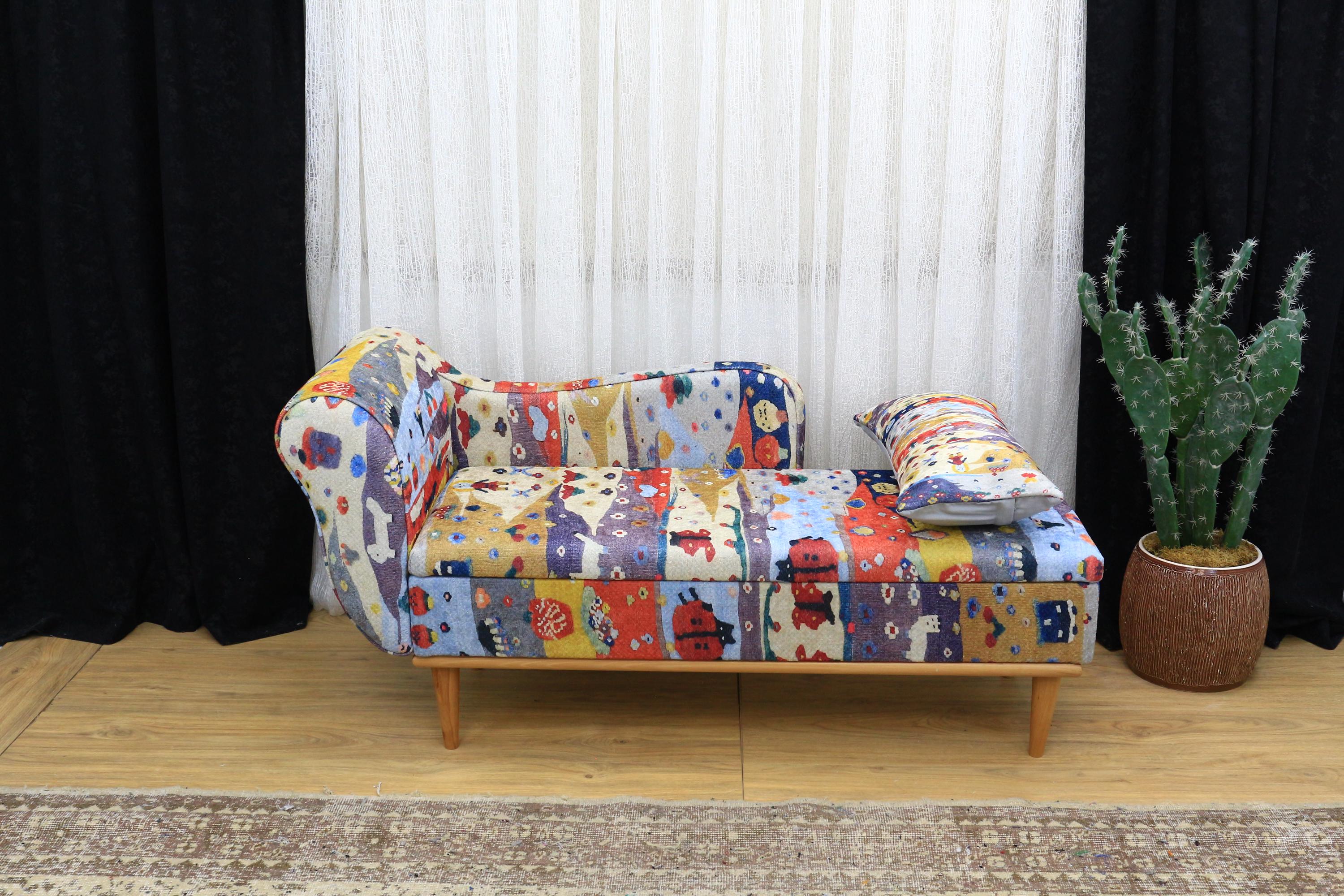 Kilim Chaise Lounge, Turkish Upholstered Daybed, Colorful Boho Rug ...