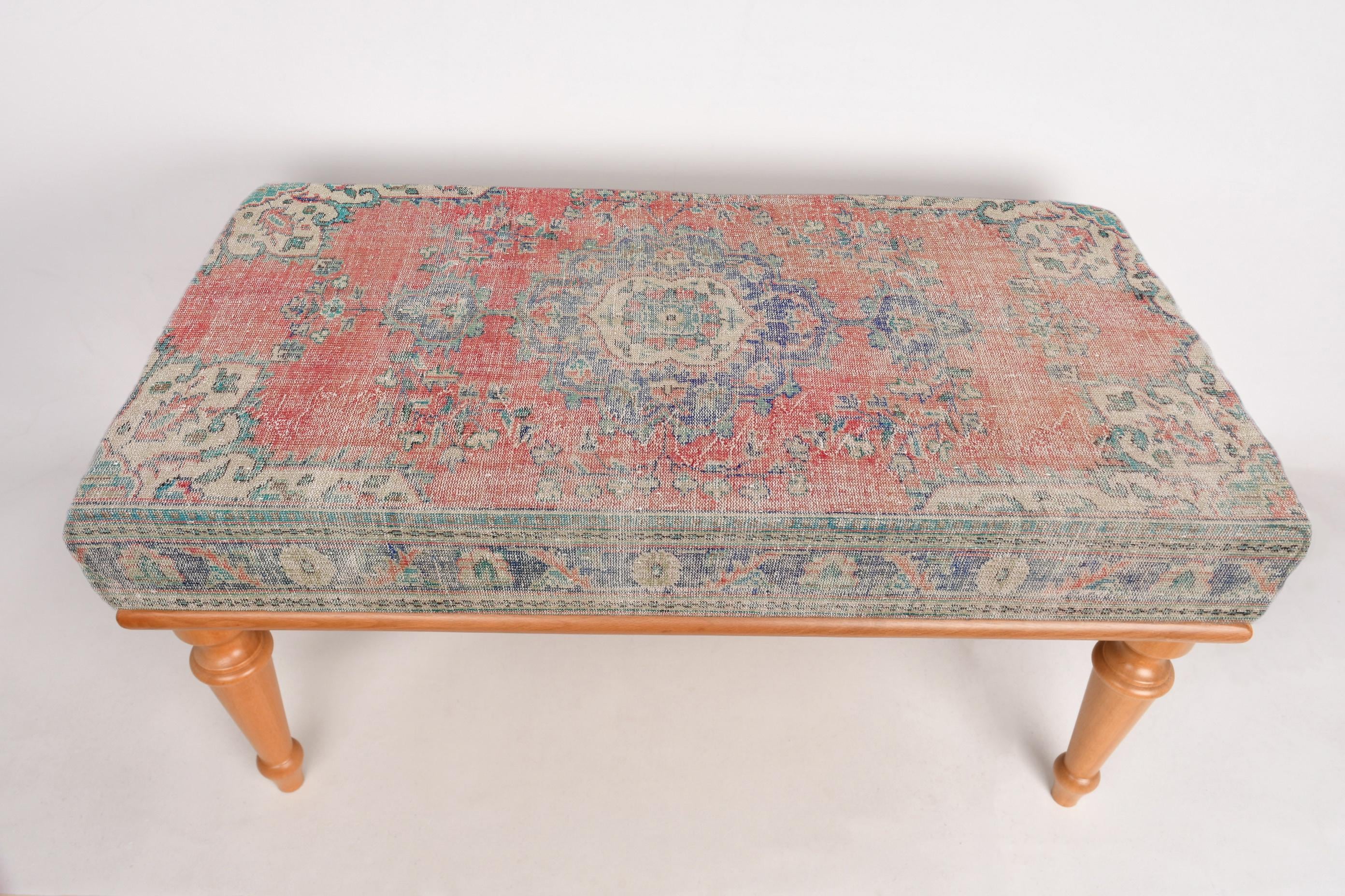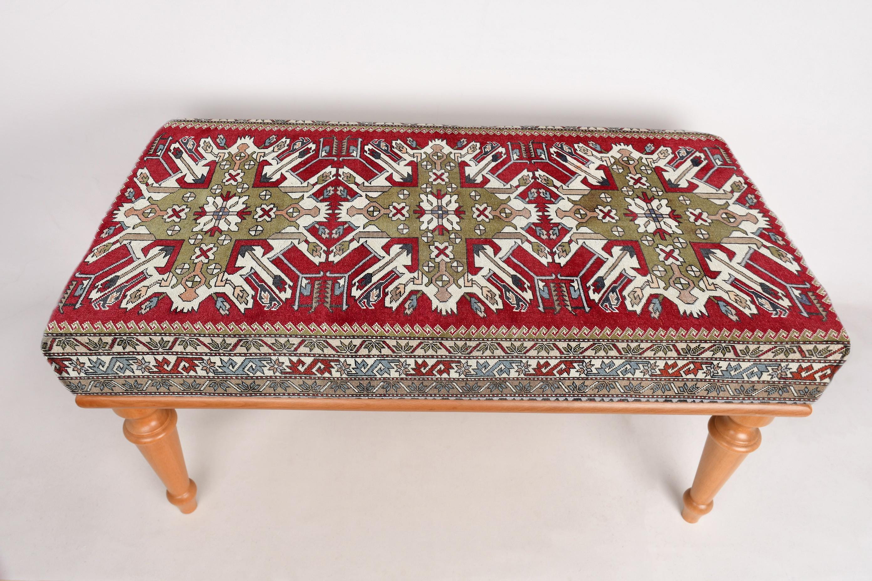 Ottoman Bench, Upholstered Bench, Turkish Rug Bench, Kilim Bench, Home Decor Bench, Handmade Bench W...