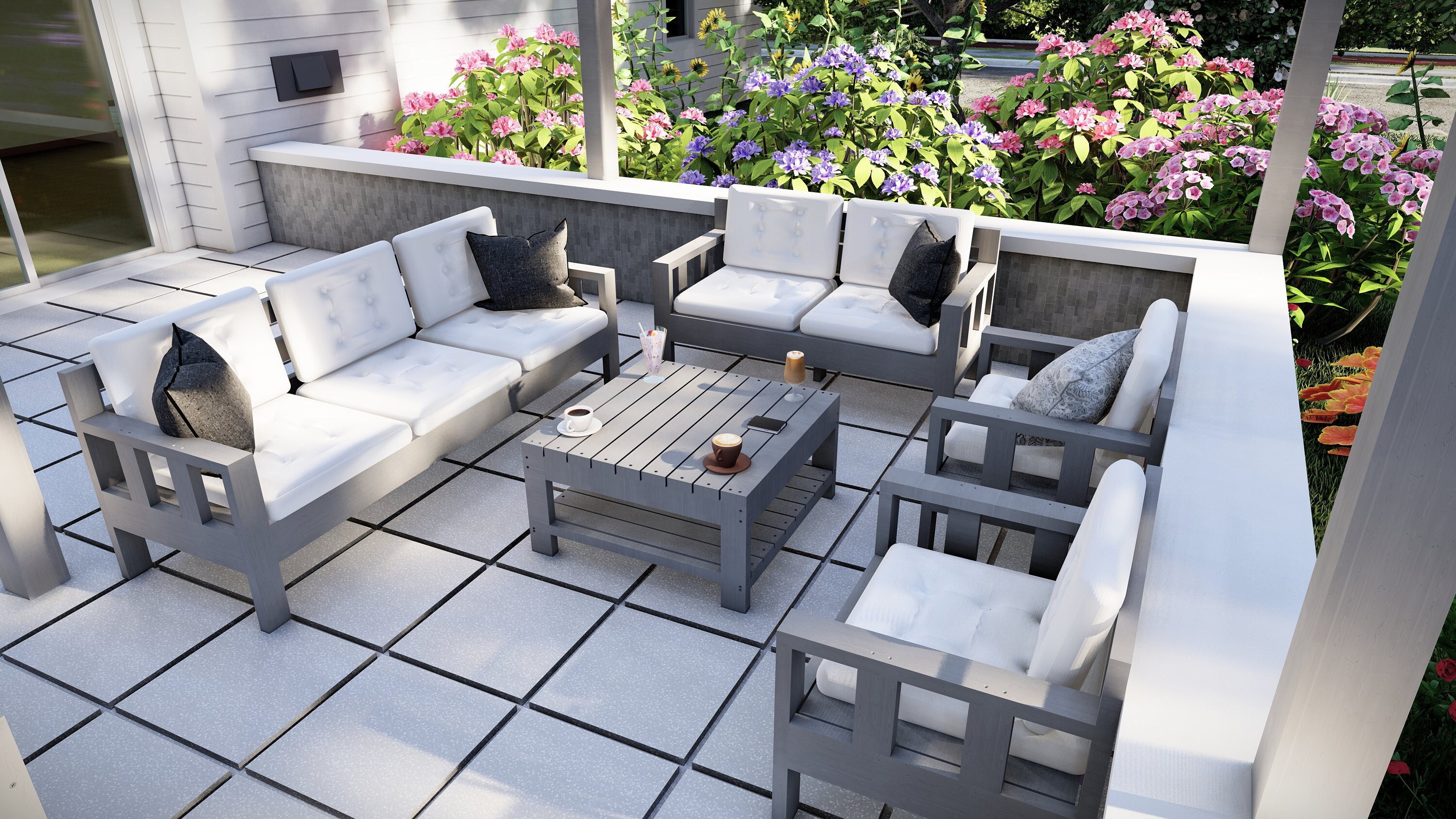 Patio chair plan with coffee table plan; 2 and 3 seater sofa plans ...