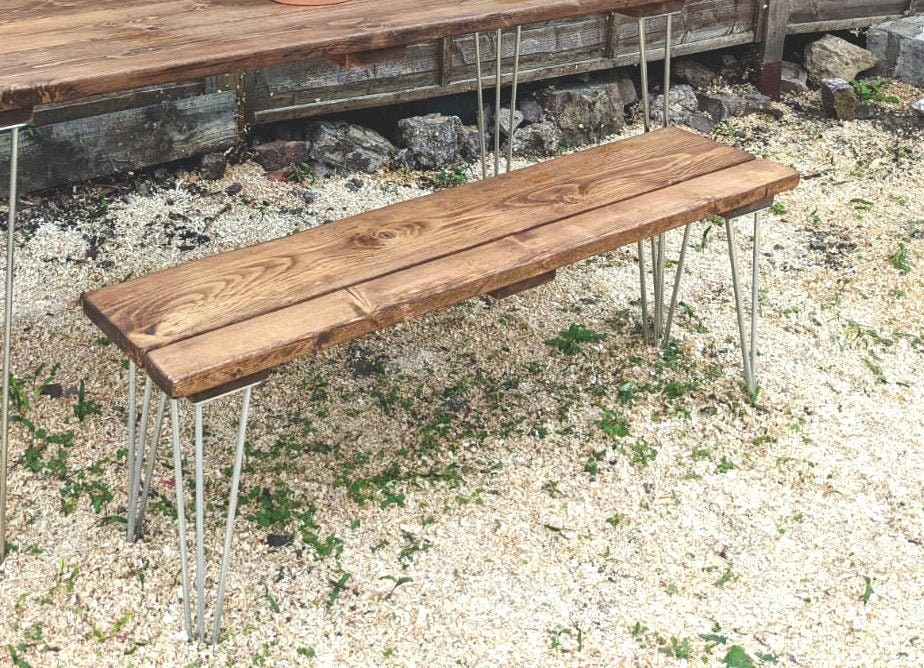 PAN:Rustic Handmade Wood Bench With Galvanised Hairpin Legs. Made From Reclaimed Wood. These benches...