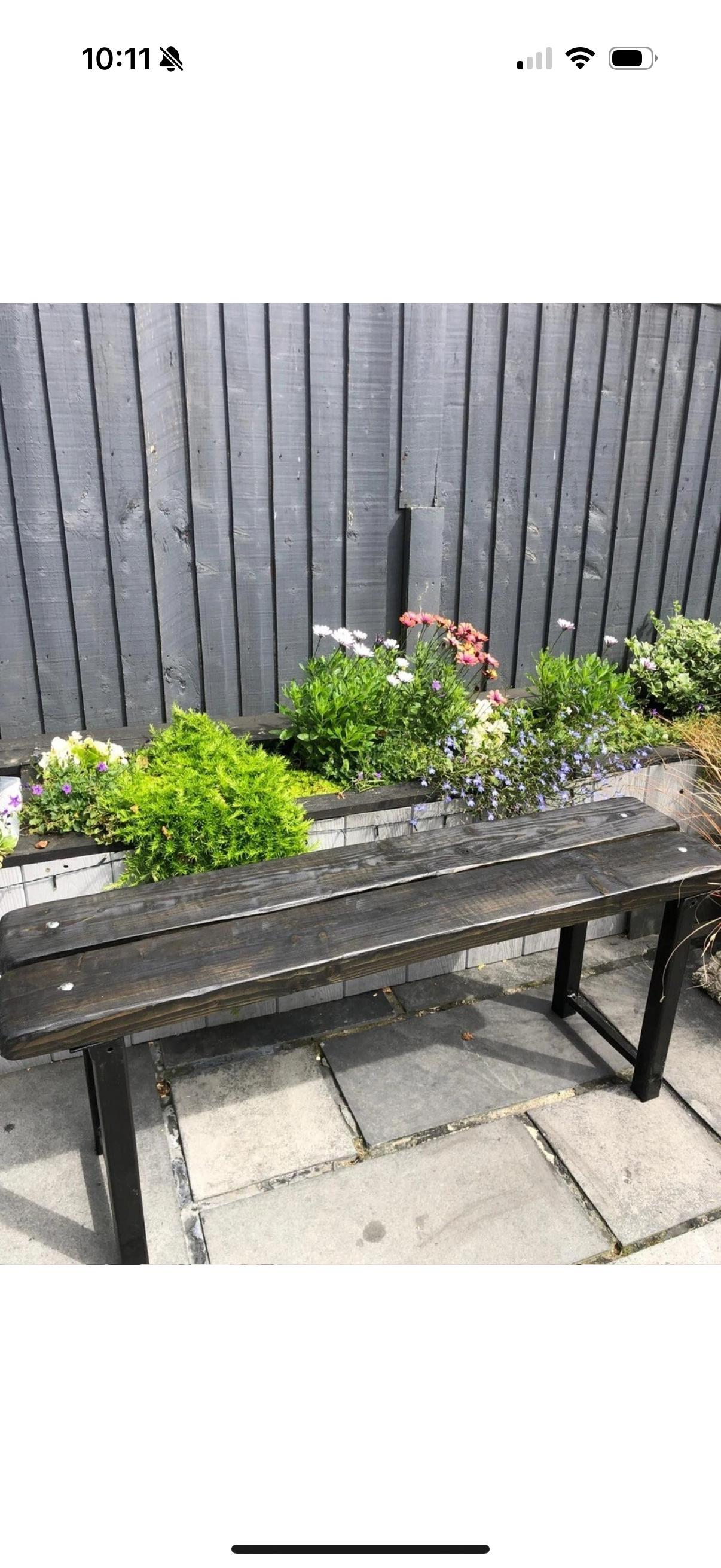 Garden bench, galvanised powder coated. Wrought iron and wood.