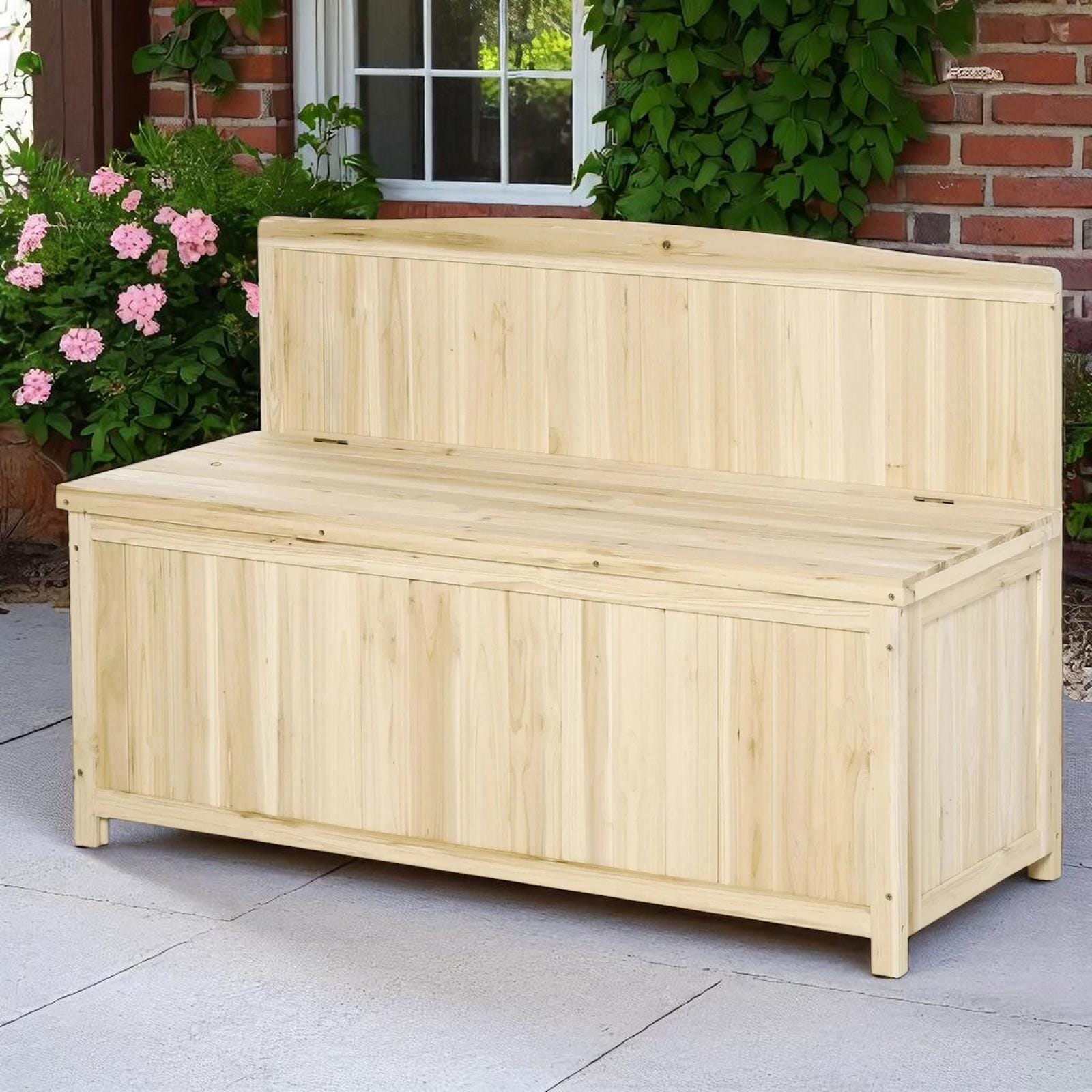 Wooden Outdoor Storage Bench Natural Garden Patio Seat with Hidden Compartment Add both function and...