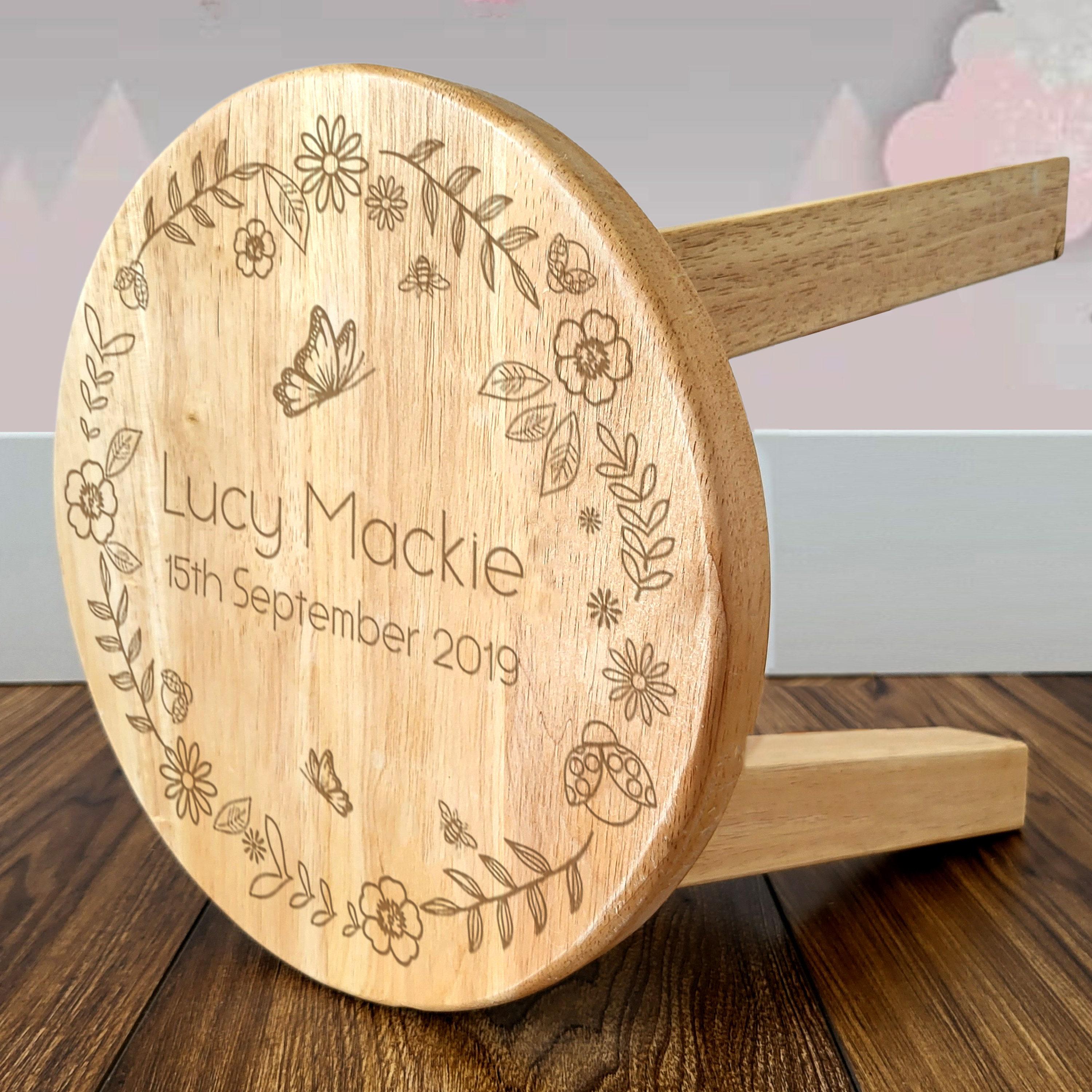 Personalised Floral Garden Child Name Stool for a Little Girl | Gir...