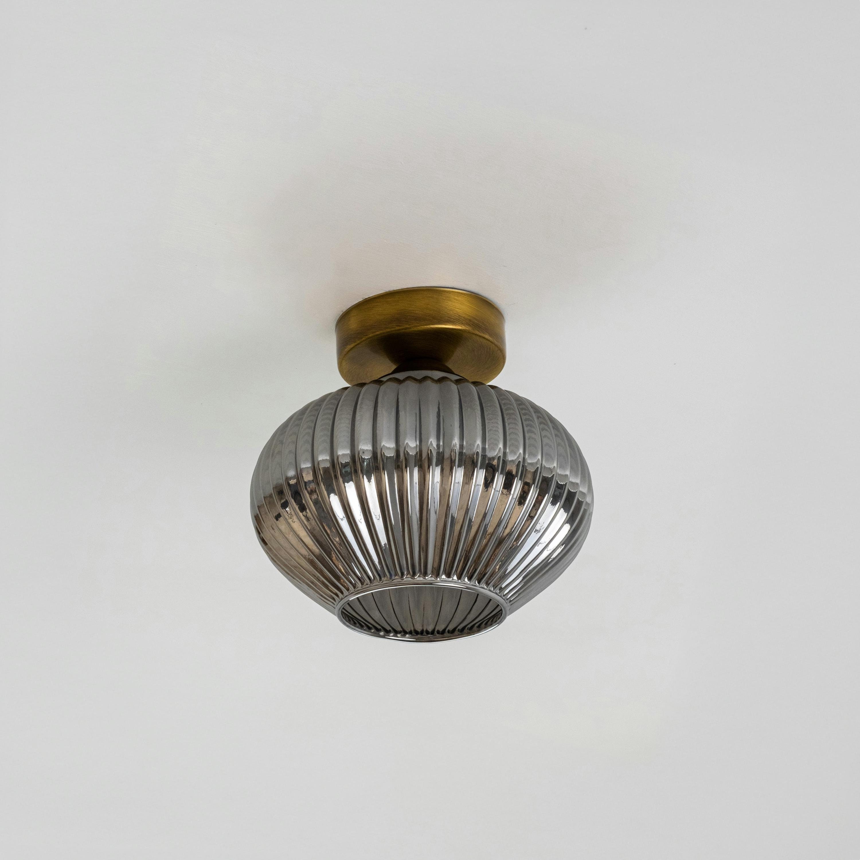 Vintage Glass Flush Mount Light, Amber Glass Ceiling Lamp, Loft Van...
