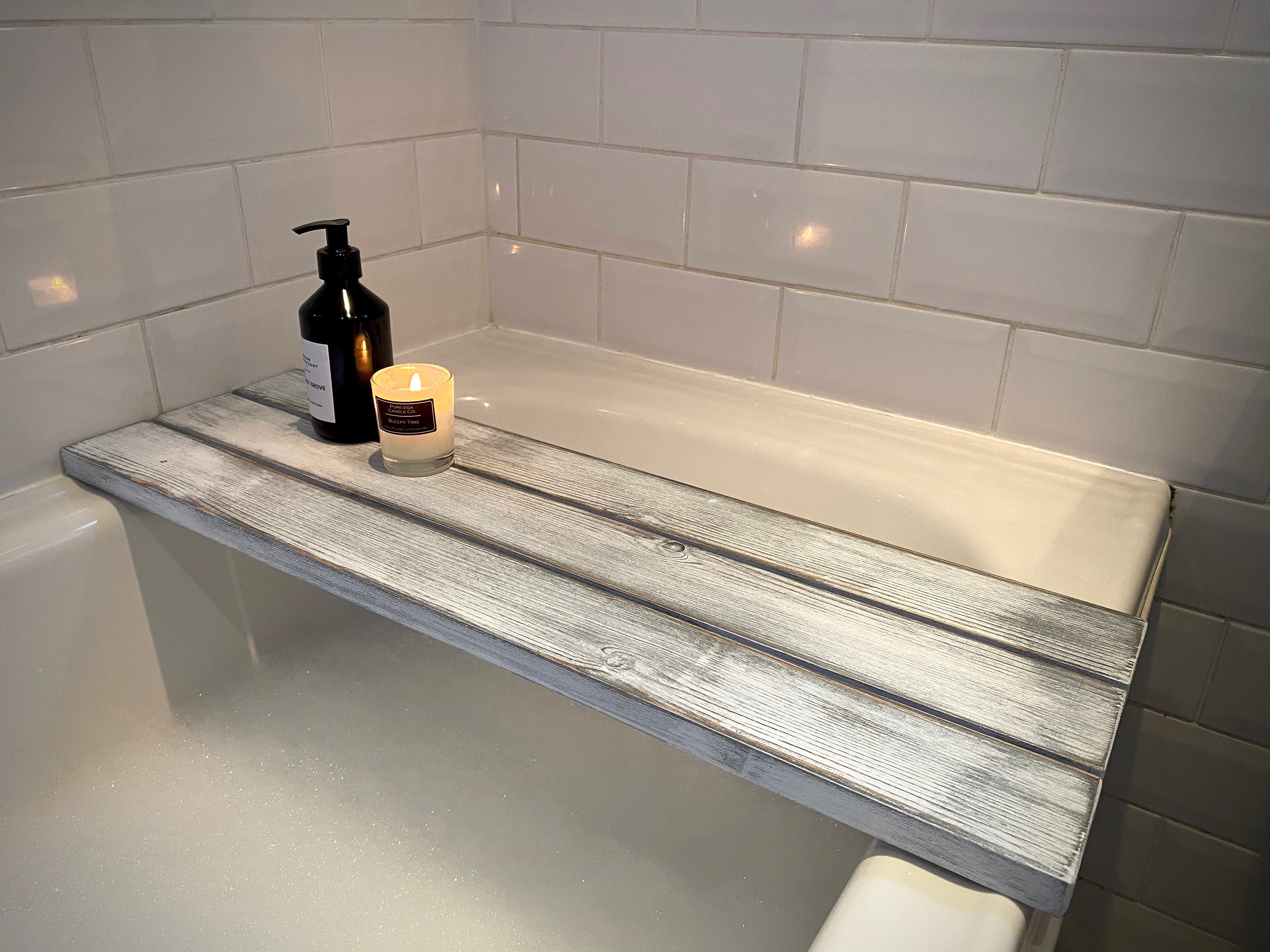 Handmade Wooden Bath Tray, Bath Board, Barn Wood Finish Grey washed