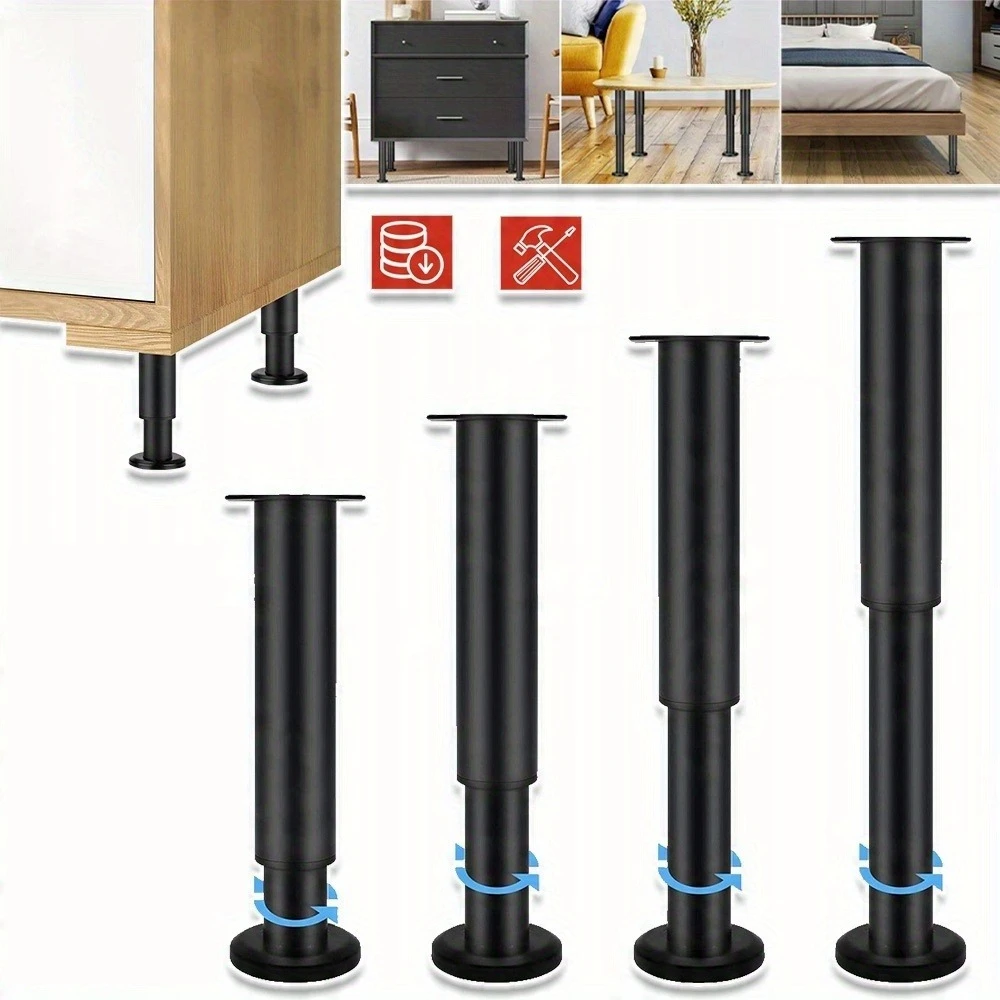 (4PCS)Heavy-Duty Adjustable Height Metal Legs - Sturdy Construction, Matte Black Finish, for Bed Fra...