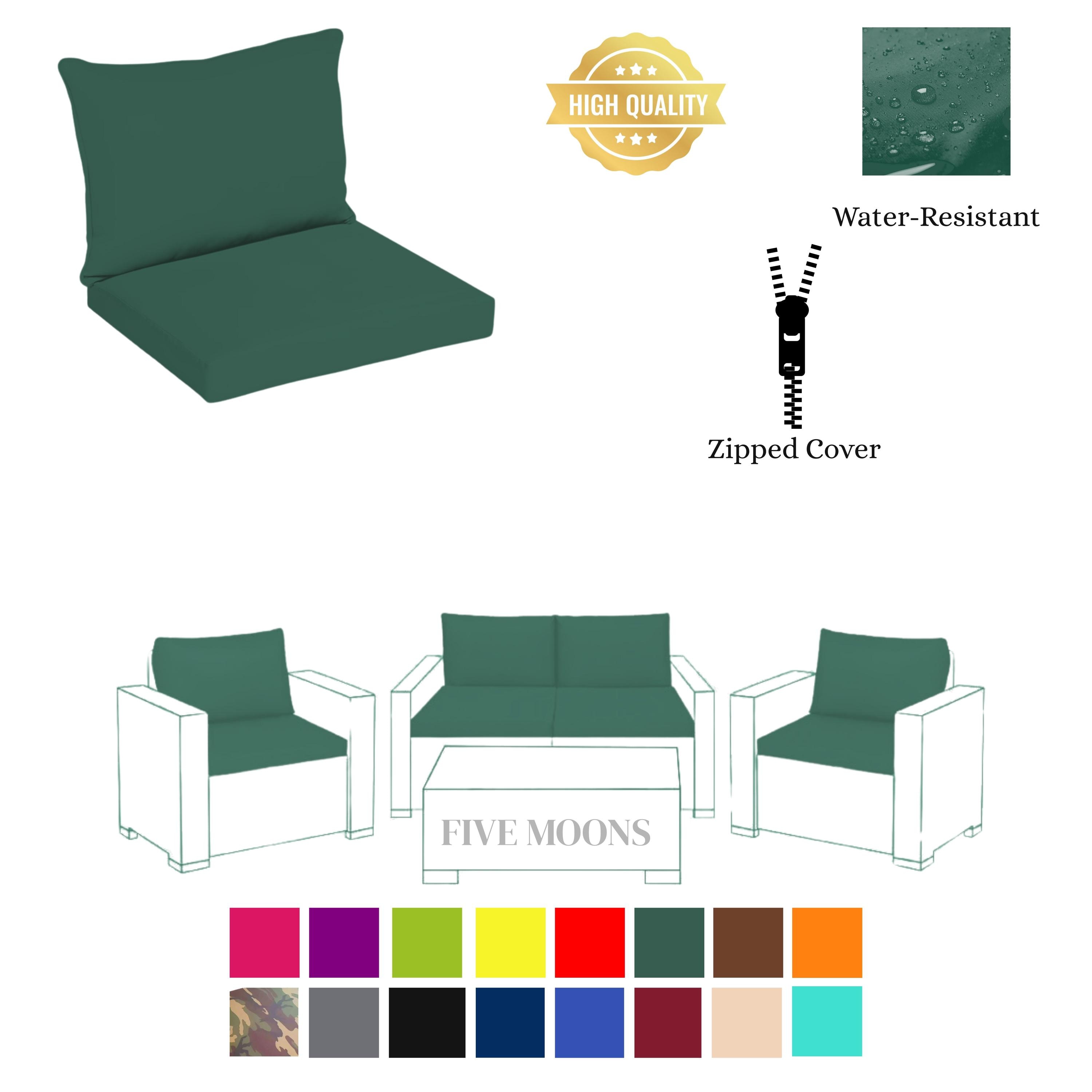 Outdoor patio cushion set with water-resistant, zippered durable co...