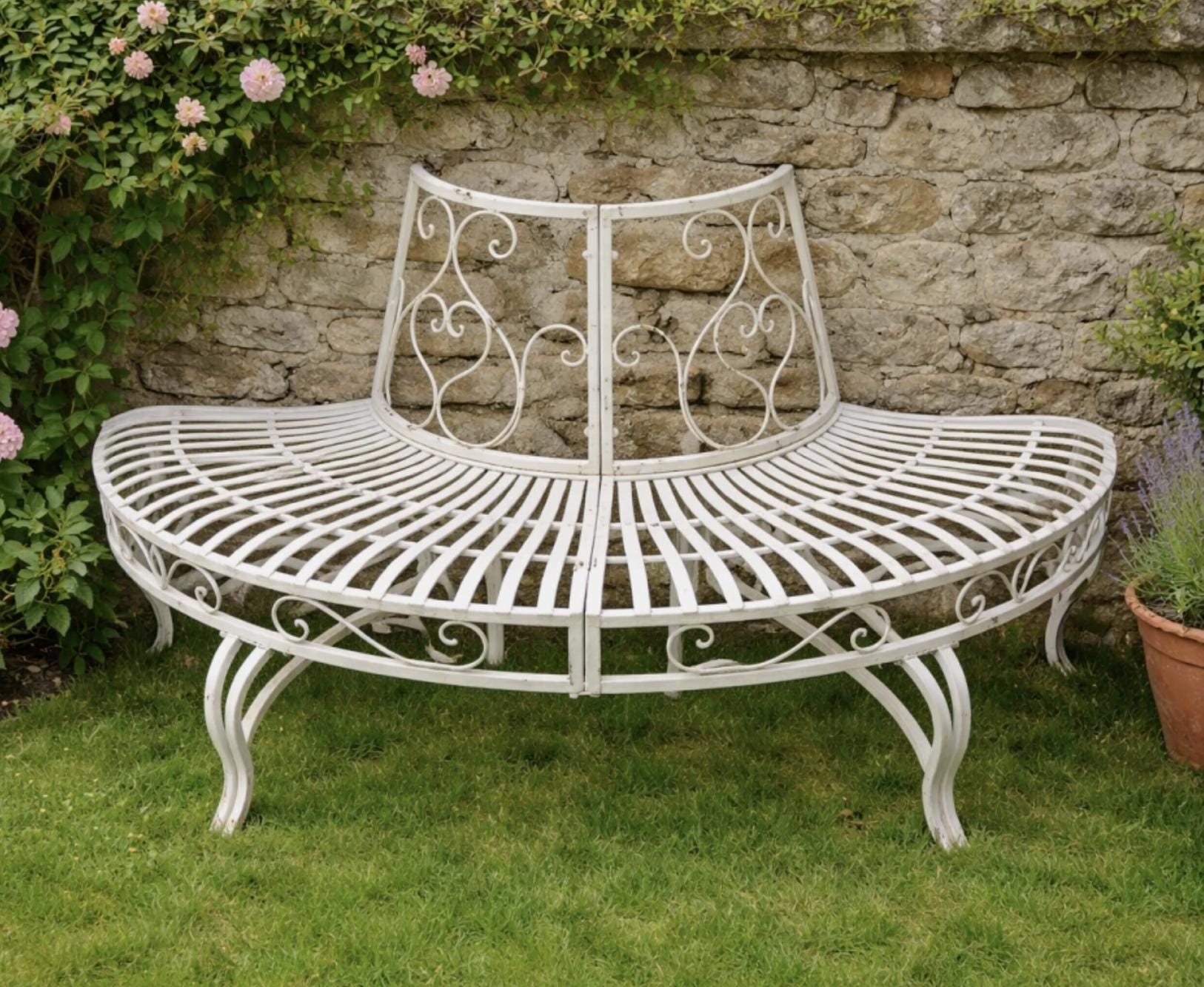 Garden Bench Metal Half Round Cream White Furniture Park Garden Tre...