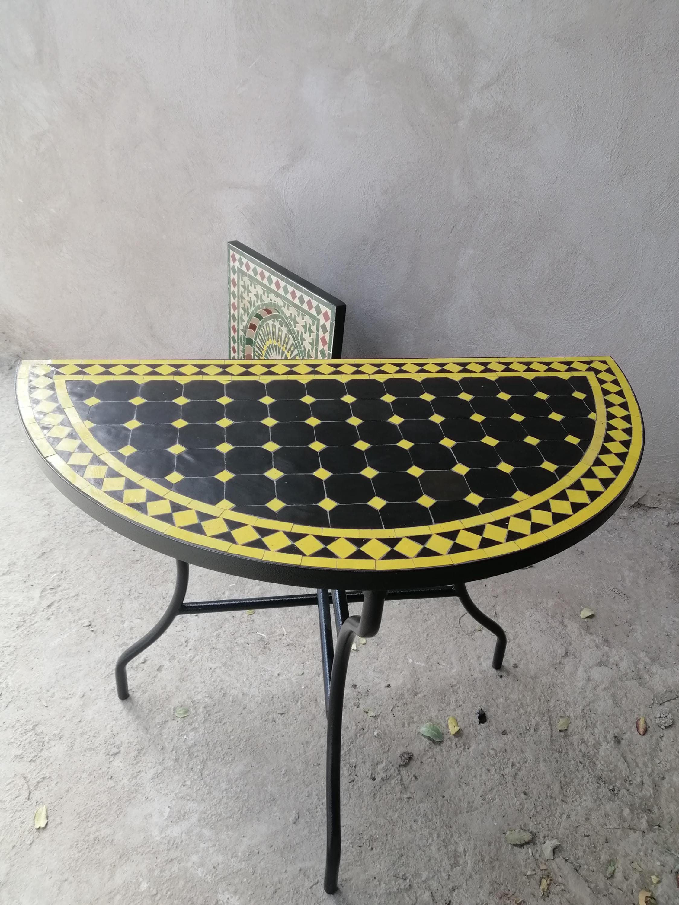Handmade Moroccan Half-Circle Mosaic Table - Vibrant Yellow and Bla...