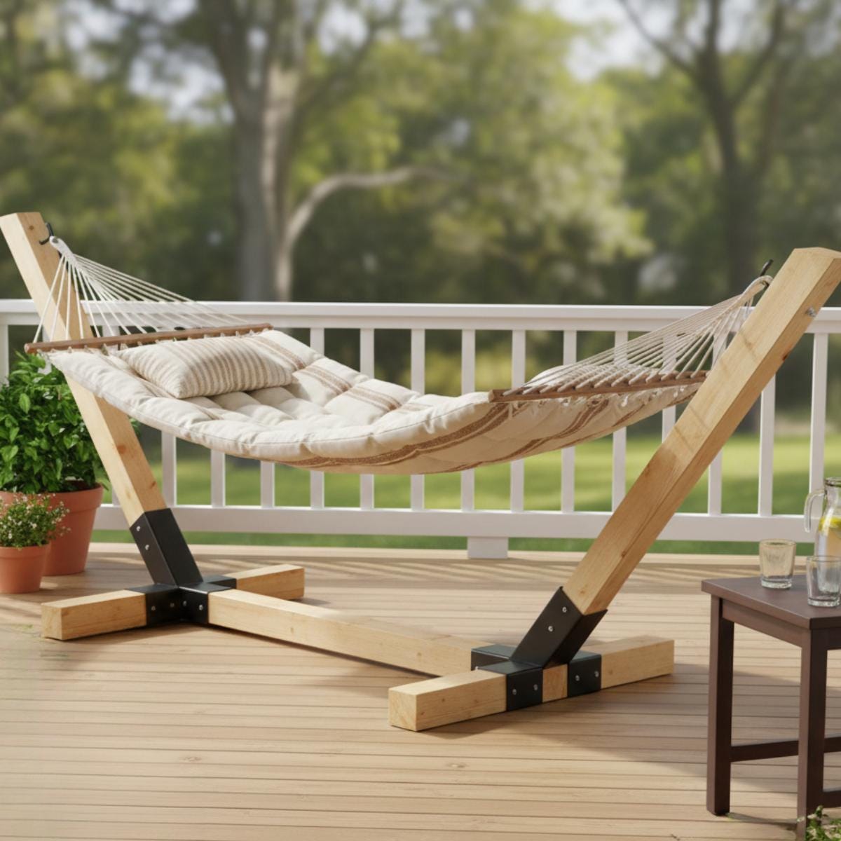 Outdoor Wooden Hammock Stand | Rustic Porch Patio Furniture | Backy...