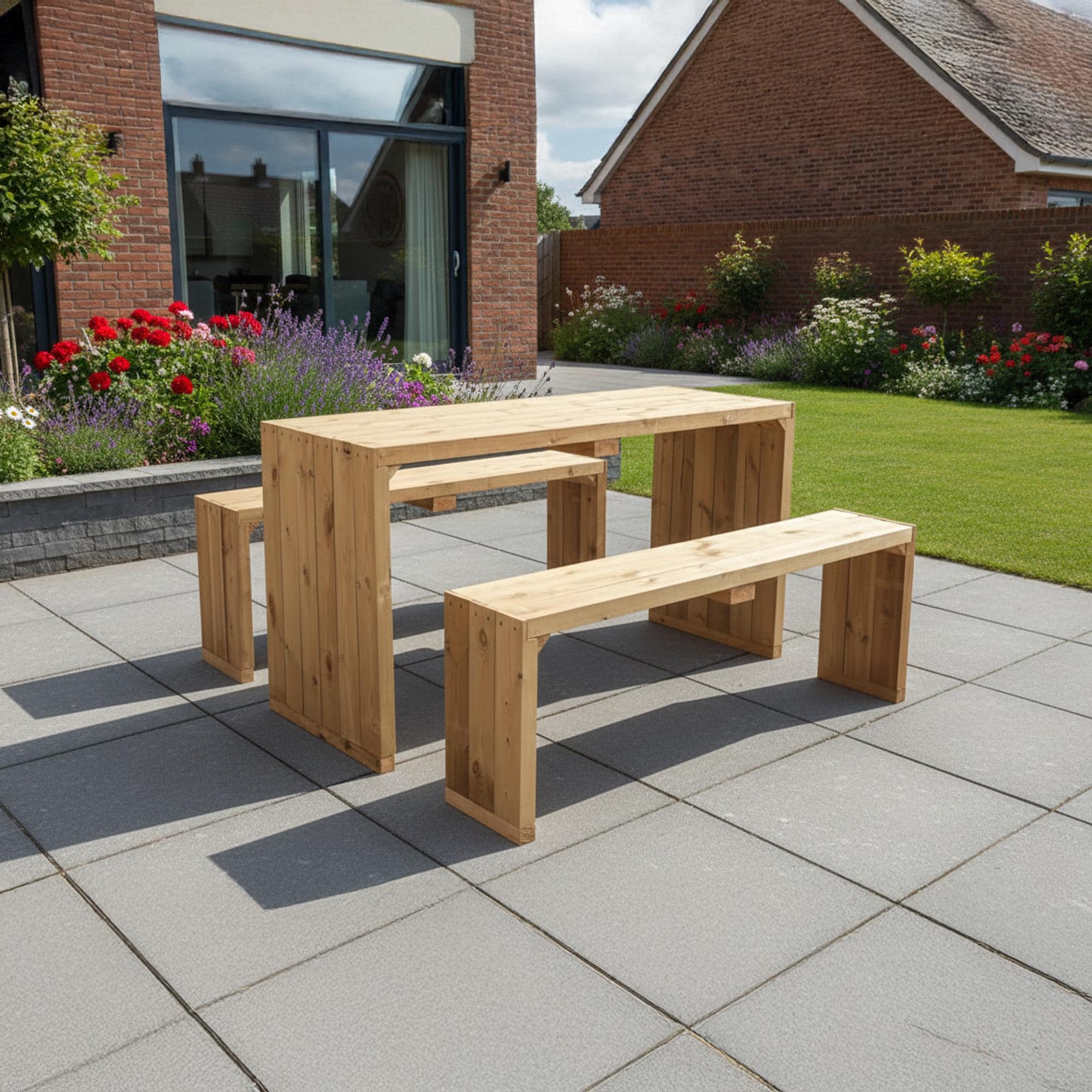 London Garden Table And Bench Set, Heavy Duty, Modern Garden Seatin...