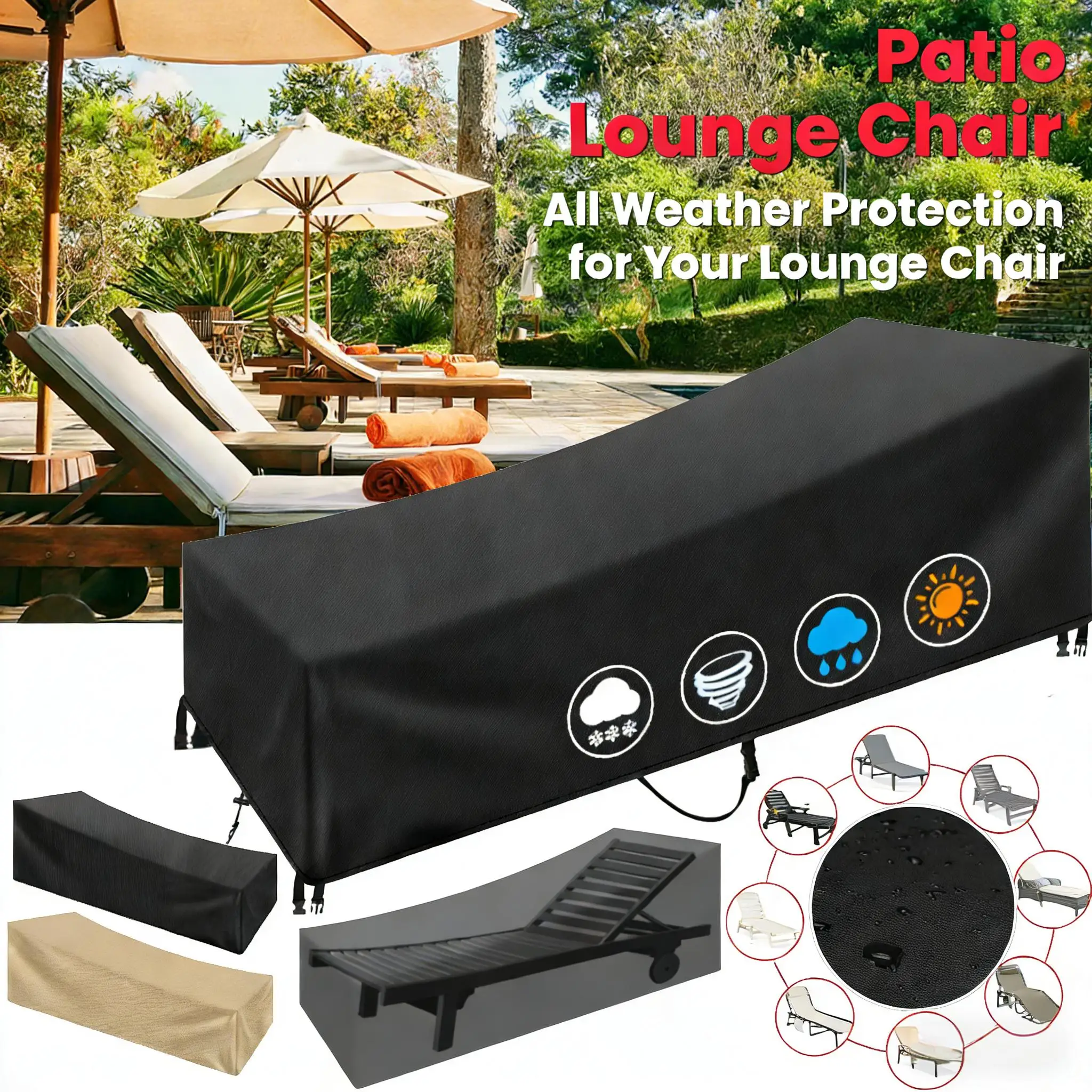 Waterproof Patio Lounge Chair Cover 210D Oxford Garden Sunbed Recliner Furniture Protective Cover He...