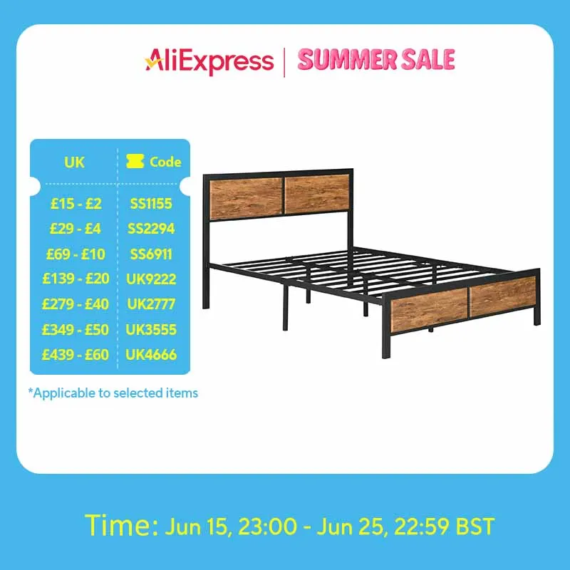 HOMCOM Double Size Bed Frame Steel Bed Base with Headboard 147 x 19...