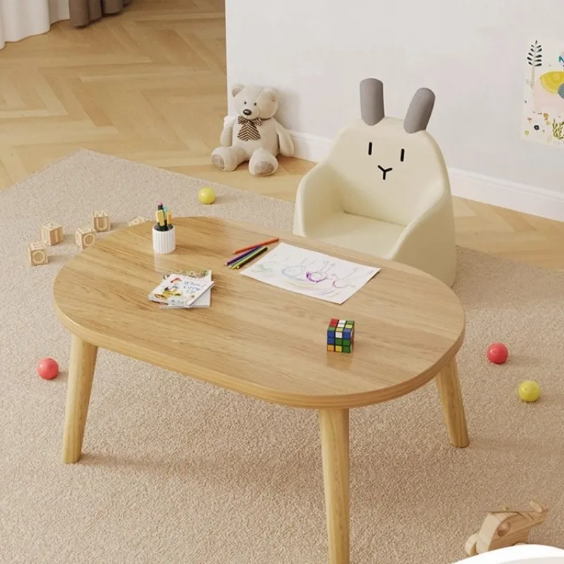 Children Table Kids Study Desk Oval Solid Wood Legs Easy Assembly S...