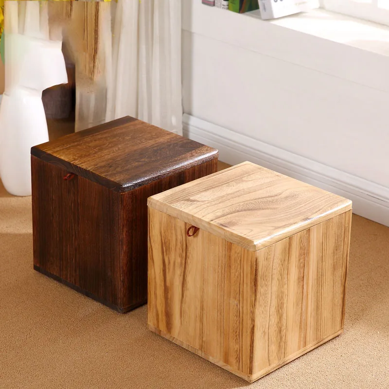 Wood Storage Stool Cube Seat Foot Rest Stool Household Changing Shoes Stools Storage Bin For Living ...