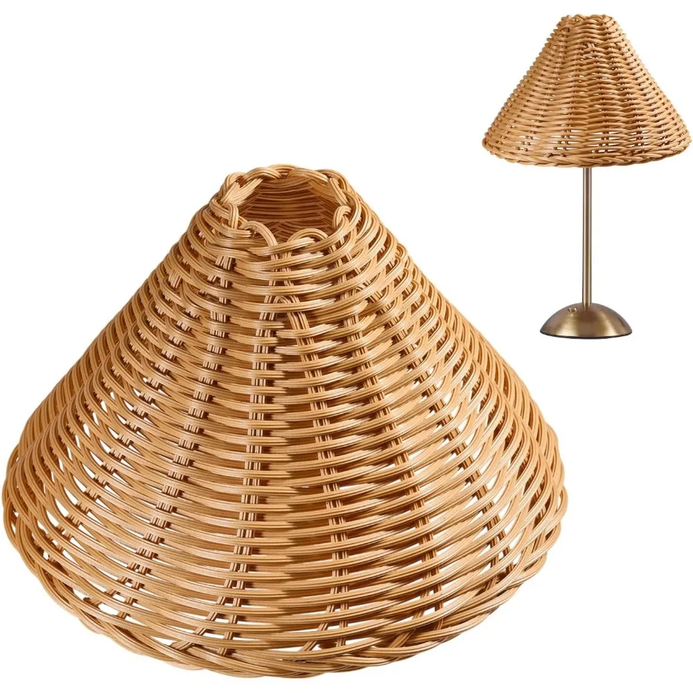 2PCS Empire Clip-On Chandelier Lamp Shades Cone Rattan Lamp Shades Replacement Clip on Lamps Shade f...