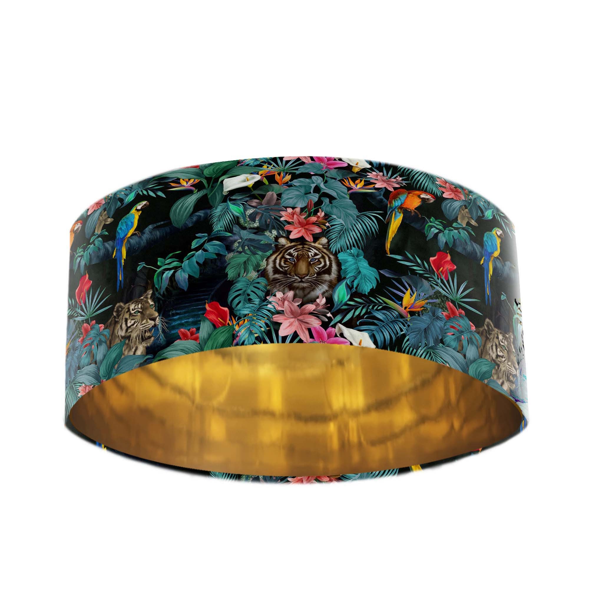 Extra Large Teal Blue Velvet Lampshade with Tropical Jungle Tigers ...