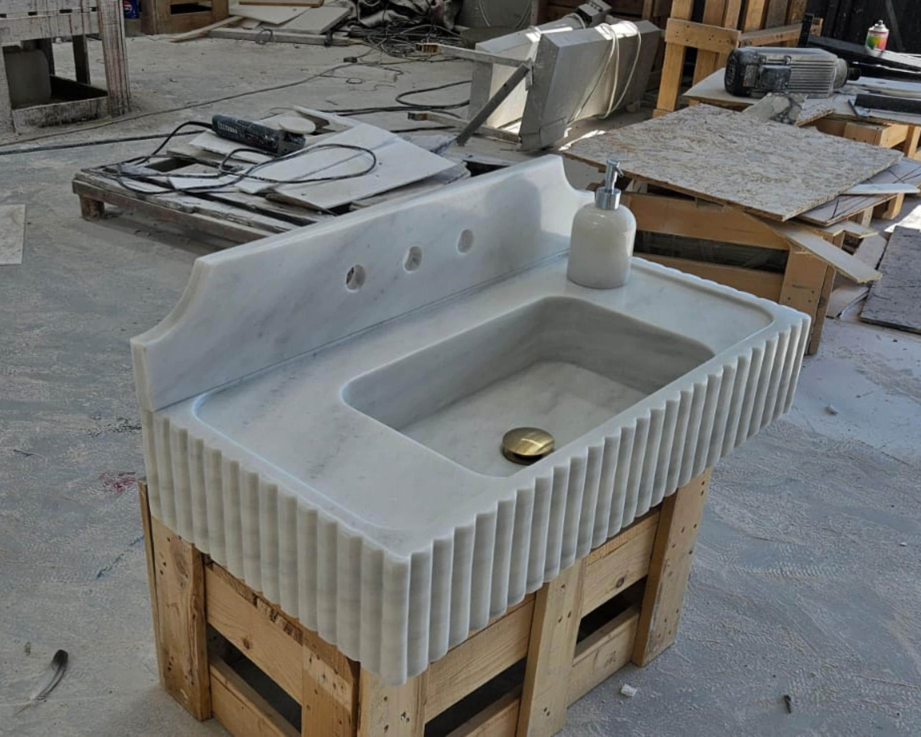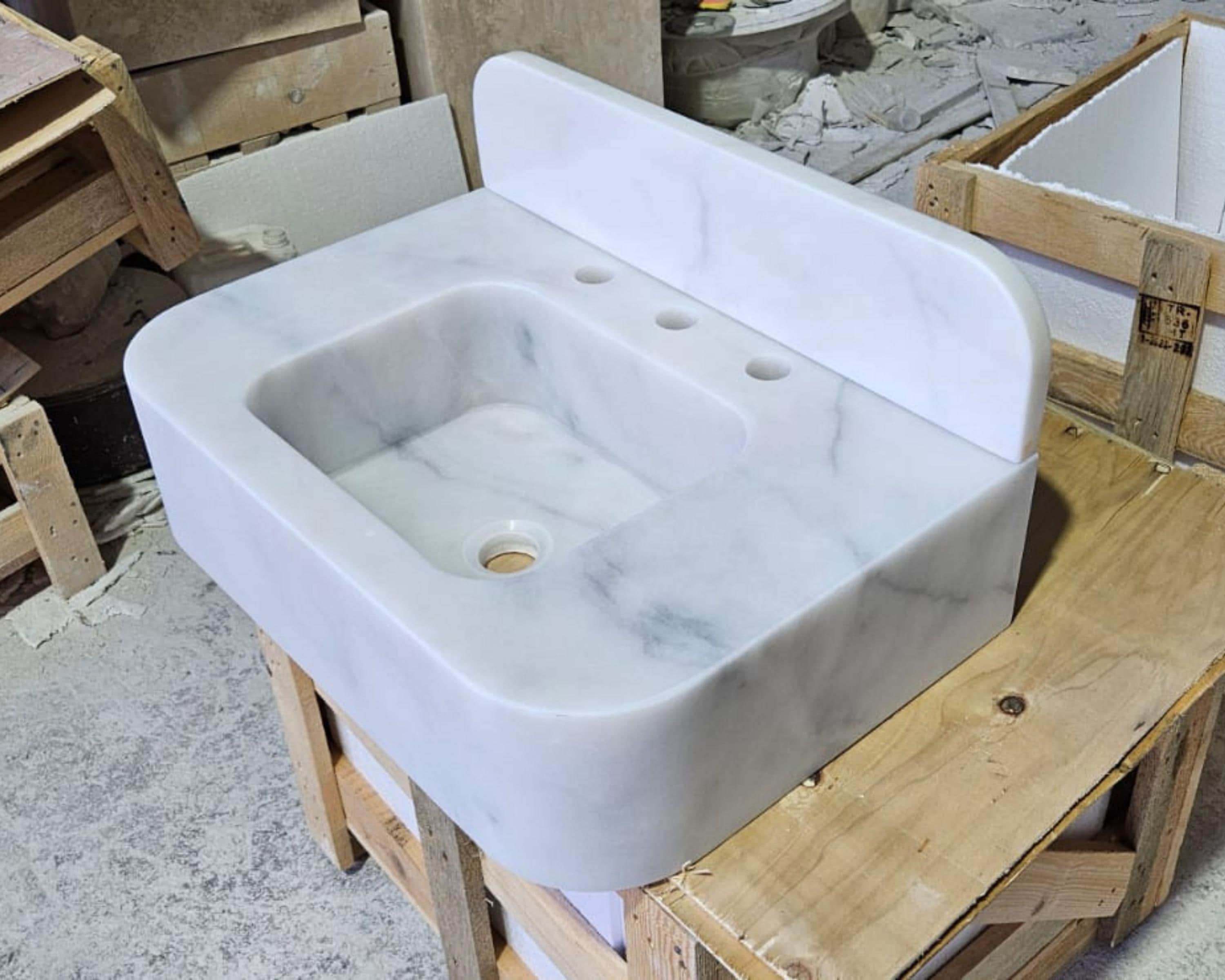 "Carrara Marble Sink Wall Mounted Sink Farmhouse Sink Modern Bathroom Sink House Sink White Mar...