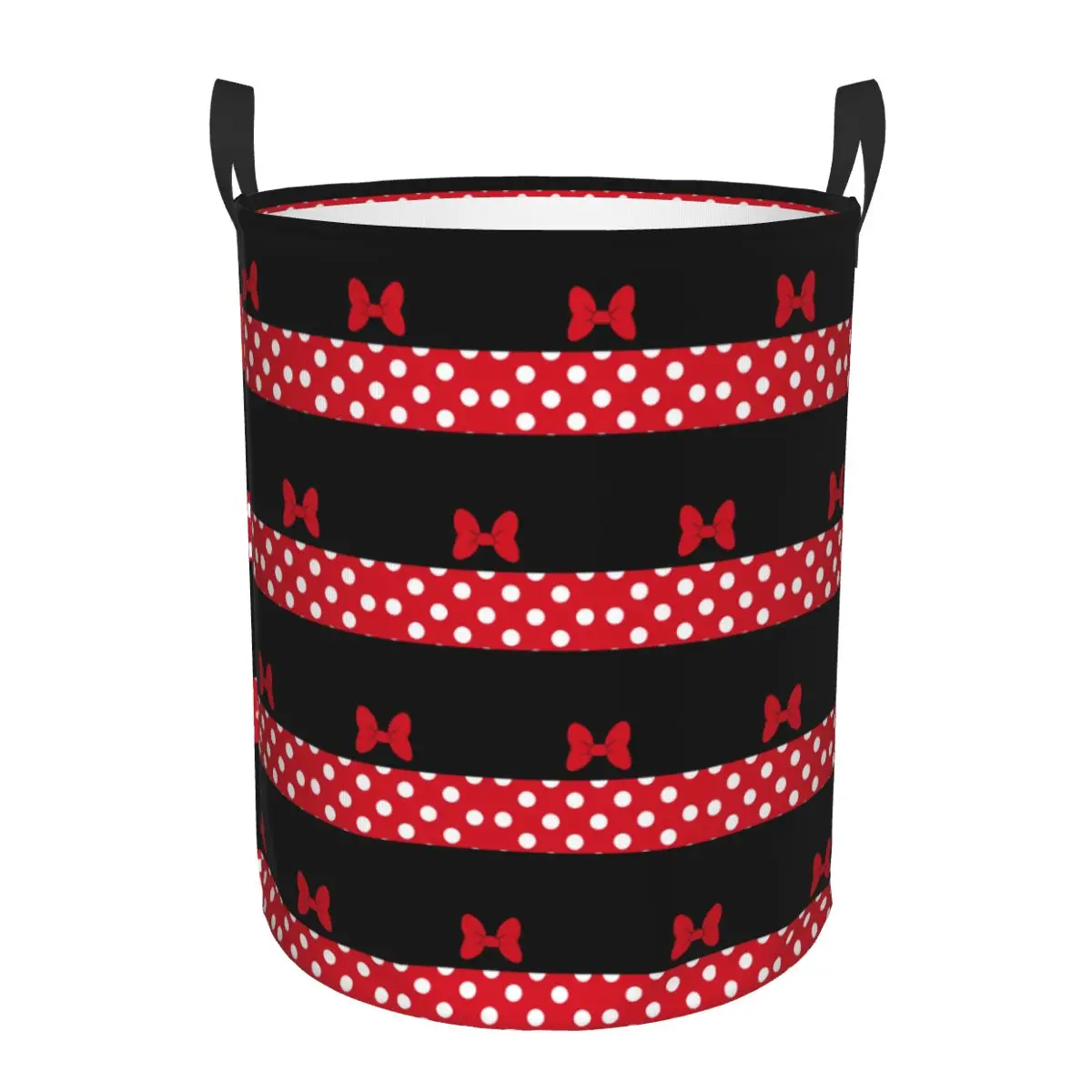 Cartoon Minnie Laundry Basket Collapsible Animated Polkadots Clothes Hamper for Nursery Kids Toys St...