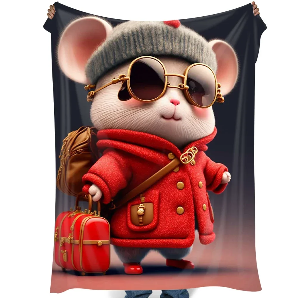 Cartoon zodiac mouse printed flannel blanket children's blanket Christmas bed sofa air conditioning ...