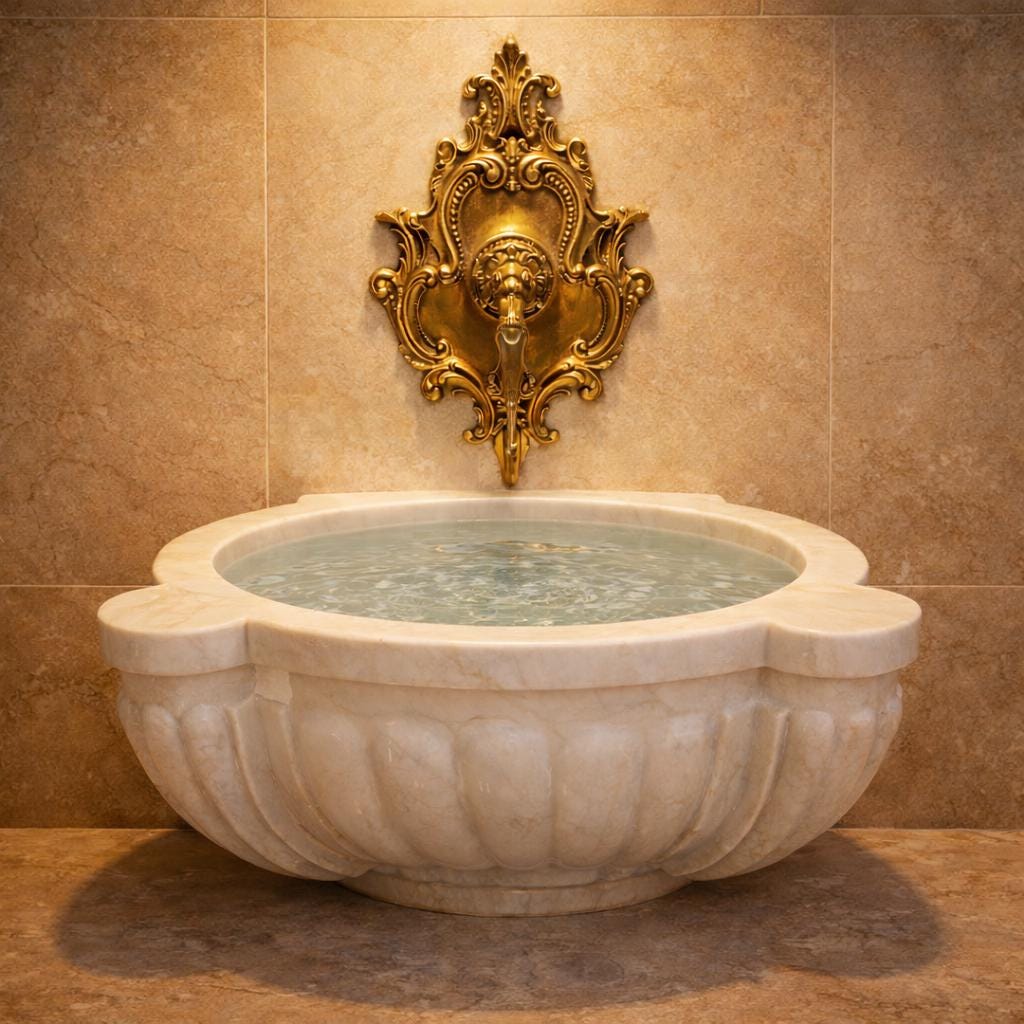 Handmade Marble Turkish Bath Sink - Natural Stone Hammam Sink for S...