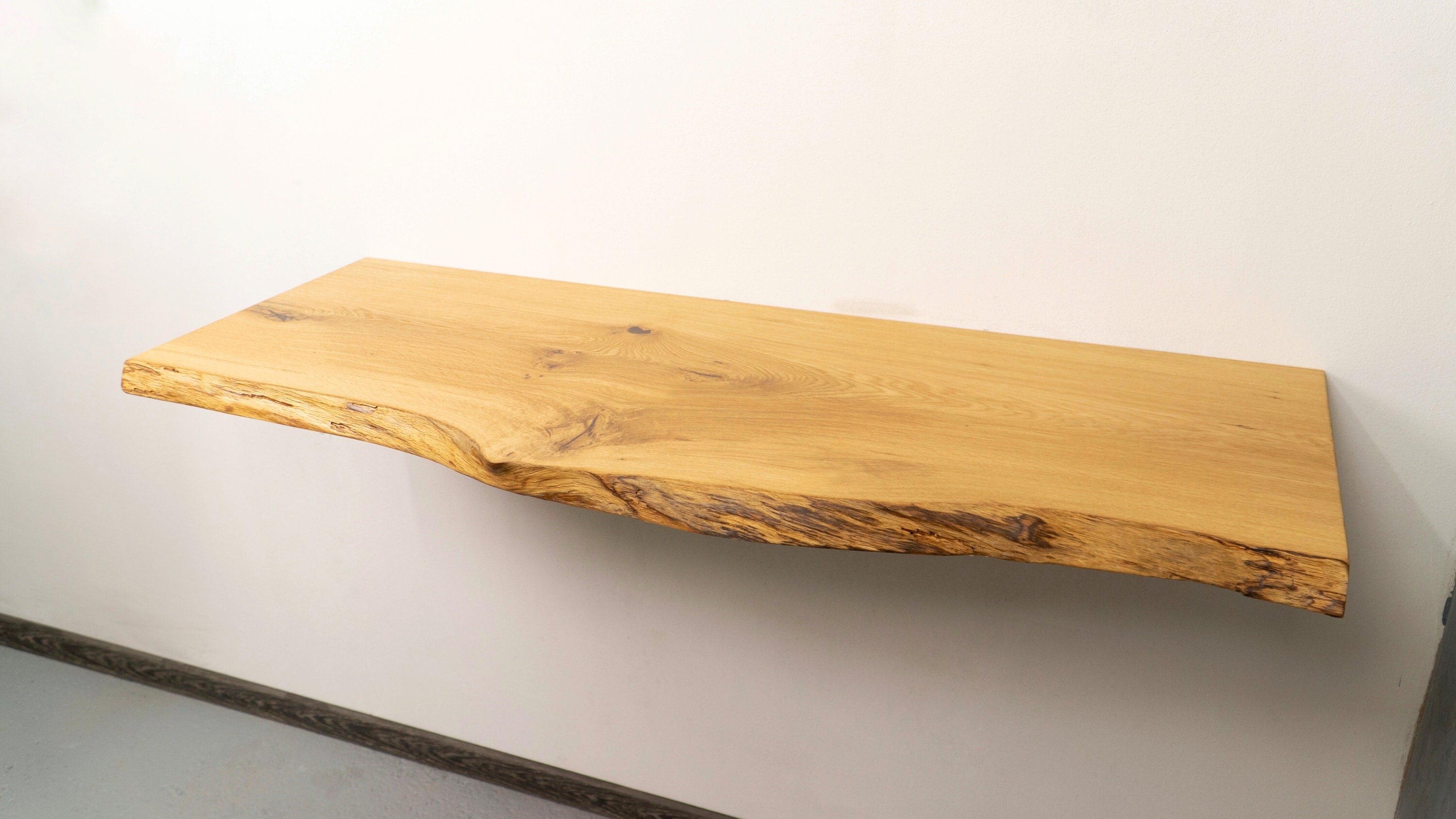 Custom Oak Bathroom Floating Vanity Shelf: Live Edge Rustic Wood