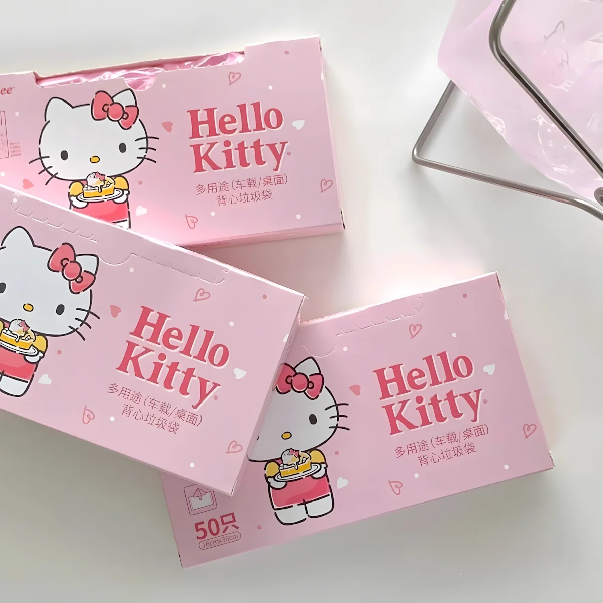 50pcs/Box Hello Kitty Pink Simple Garbage Bag Disposable Kitchen Office Plastic Bag Portable Desk Ca...