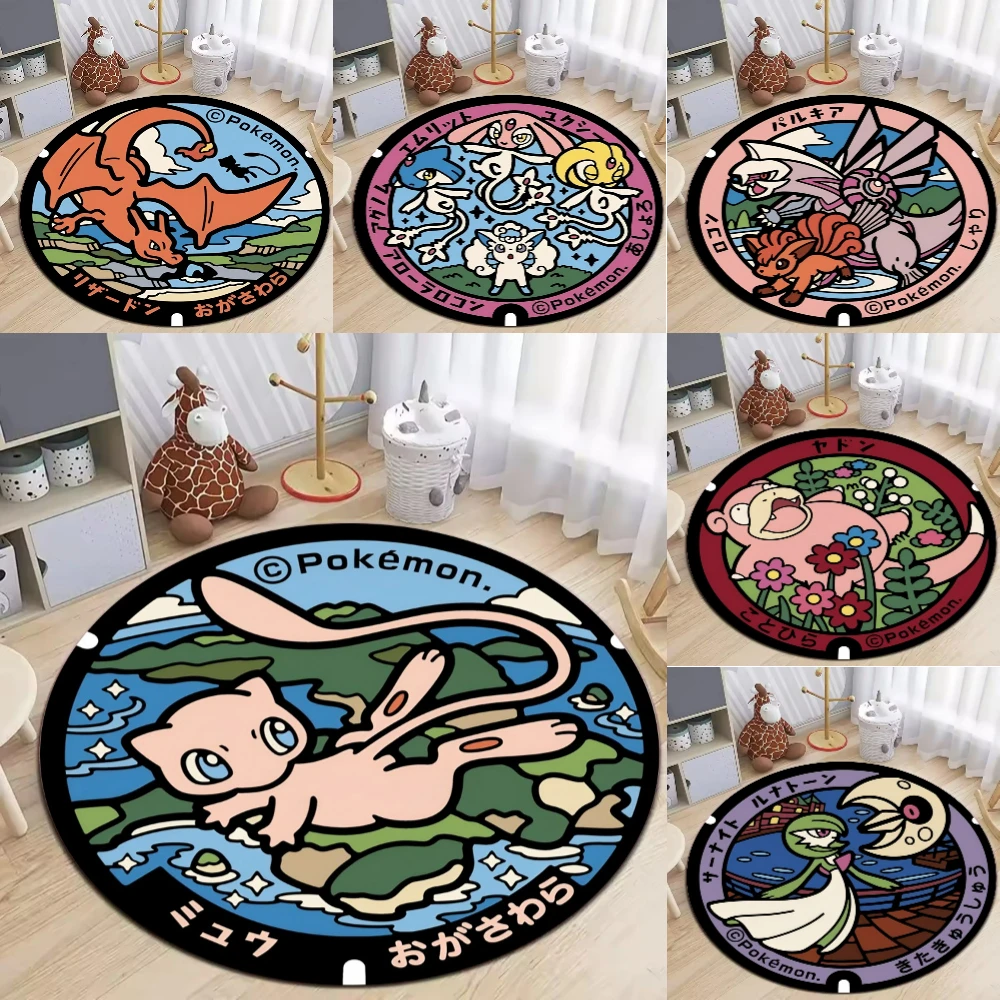 MINISO Pokémon Mew Mewtwo Round Rugs Living Room Sofa Rug Bedroom Rug Man's Cave Game Room Sw...